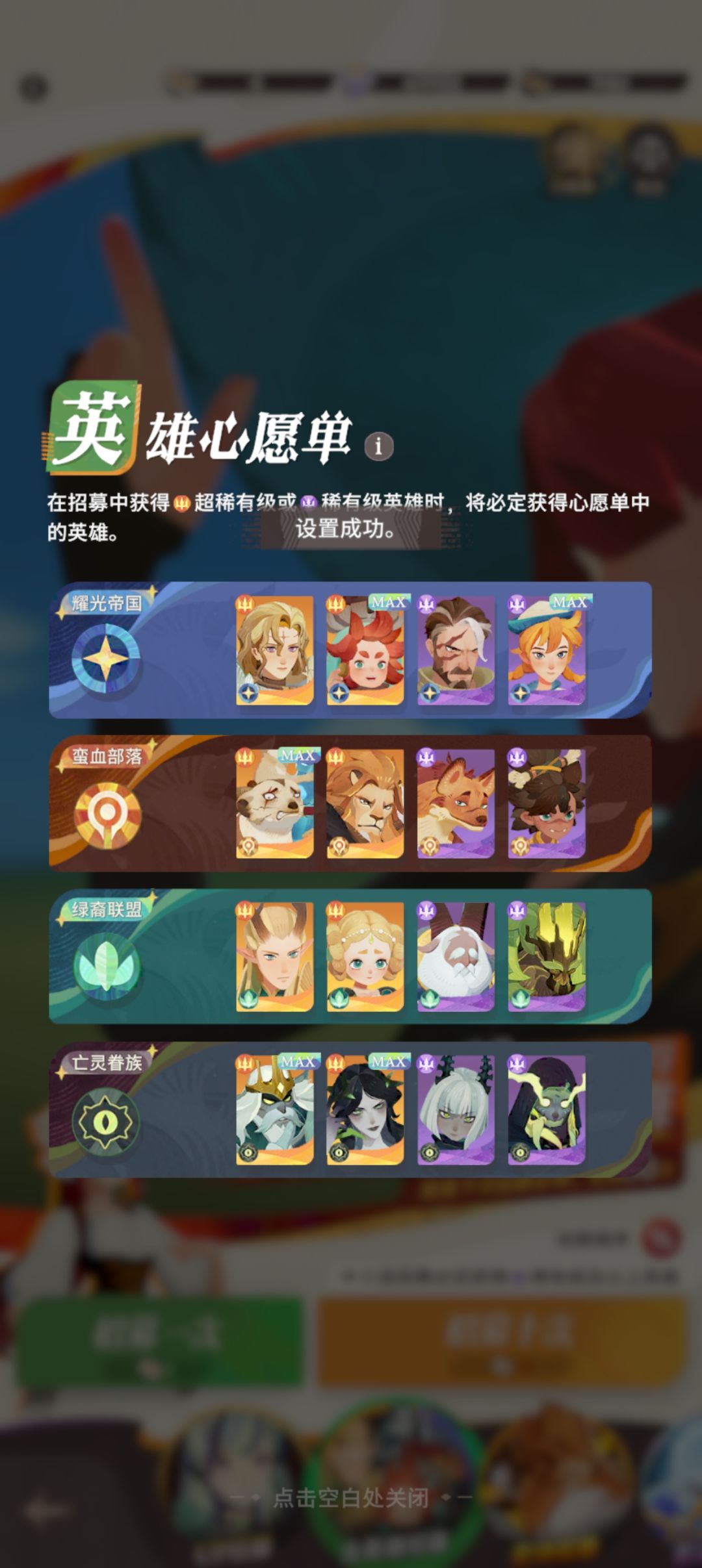 欢迎新老玩家(礼炮)以下内容助你少走弯路 第一步: “心愿单安排好” 体系时代 每个英雄都有特点,强度榜单只是起到参考作用并不绝对,因为阵容存在克制需灵活调整。 1、 抽卡/心愿单推荐: 阵容需要前排、输出、辅助、因为不知道你们抽的怎么样,到时候还需自行调整,自己不知道的话也可以评论留言 史诗心愿单(图一) 可以选个啊德,因为出来的直接是橙卡“五张” 全英雄心愿单(图二) 都是比较实用的 2、游玩