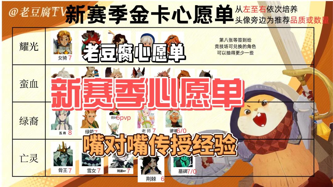 观众老爷们好我是君王,[表情_可爱] 这篇攻略是为了帮助大家理解 【全角色解读评分攻略】及【纯种族养成解析攻略】 内容中所包含的角色词条的通俗说明, 更方便大家去理解这个角色的定位,及使用搭配方向。 以及拥有哪些词条是比较强力,这些词条又是什么意思 所额外加更的一篇攻略,可以理解为词条通俗化解释。 搭配【全角色解读评分攻略】及【纯种族养成解析攻略】使用。 一【心愿单放置标准答案】 ①常驻池心愿单这