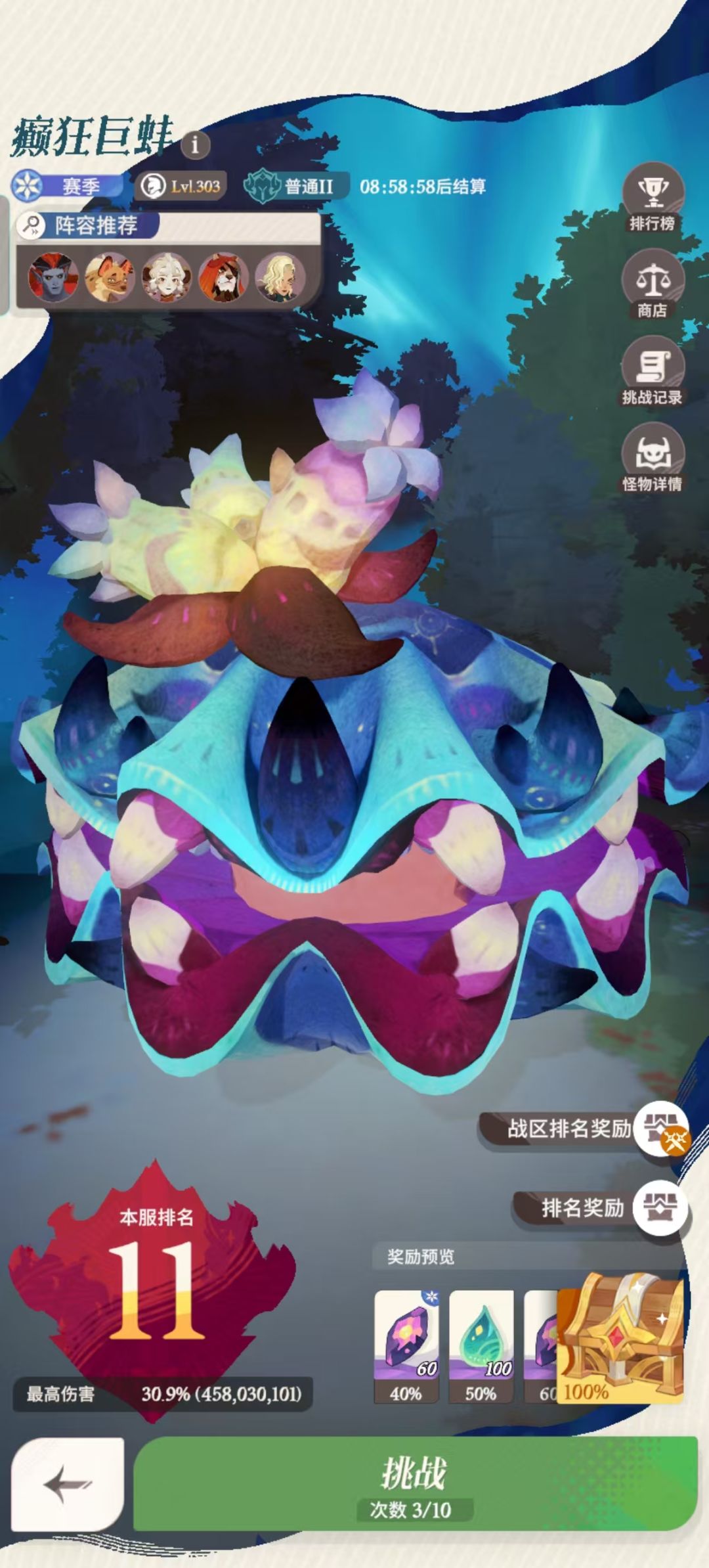 前言 Hello亲爱的朋友们大家好这里是土豆牧师。本期内容给大家带来一月十八日巨蚌的阵容攻略。 阵容原理和注意事项 由于巨蚌的特殊性,其阵容可操作的地方相对较少, 首先因为吞人机制的存在,两个独立个体的蝎子是必备的, 同时需要具有脱场能力的辅助,曼卡拉也不能轻易替换。 可以上场的其他角色有双子,斧熊,花姐,四手,最容易被淘汰的是斧熊,但是也是平民门槛最低的。 顶配阵容 第一套顶配阵容需要我们锈锚港