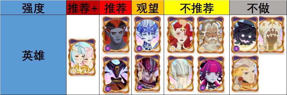 目录: 英雄简称对照表+英雄强度榜 新人前期推图阵容搭配及站位推荐 全种族英雄培养优先级推荐 新手玩家心愿单推荐 商店购买攻略 迷梦之域玩法中前期简要攻略及阵容推荐 第7天签到史诗英雄自选箱四选一推荐 英雄升阶消耗表(英雄升级品质需要多少本体) 氪金攻略(按性价比排序) 要不要刷初始号 常用查攻略渠道推荐 一、英雄简称对照表+英雄强度榜(文章末尾有英雄全称和昵称对照表) 强度榜说明: 1.个人意见