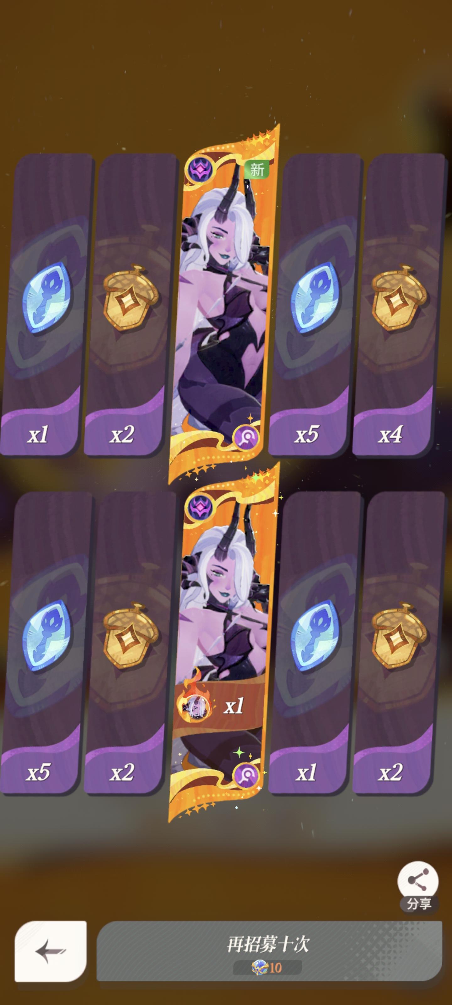 好久没有这么欧过了。想收集下新神魔,就换了20个球试试水。第一组十连就进入角色动画了,0垫十抽出金。遥想上次十抽出金还是上次。想了想还剩十个球,再抽一组。按下了第二次十抽,仅仅片刻过后,那刚见过的角色cg又一次播放!竟然是连续两次十抽都出了神魔!20抽两个神魔,约等于省下60抽,赚了。哎呀,狗运都花在这上面了。你早说啊,早说我手这么热,我就去买福利彩票支持福利事业