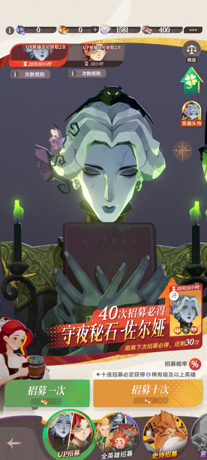 三万钻补了五张女妖,第二张金卡冠一owo