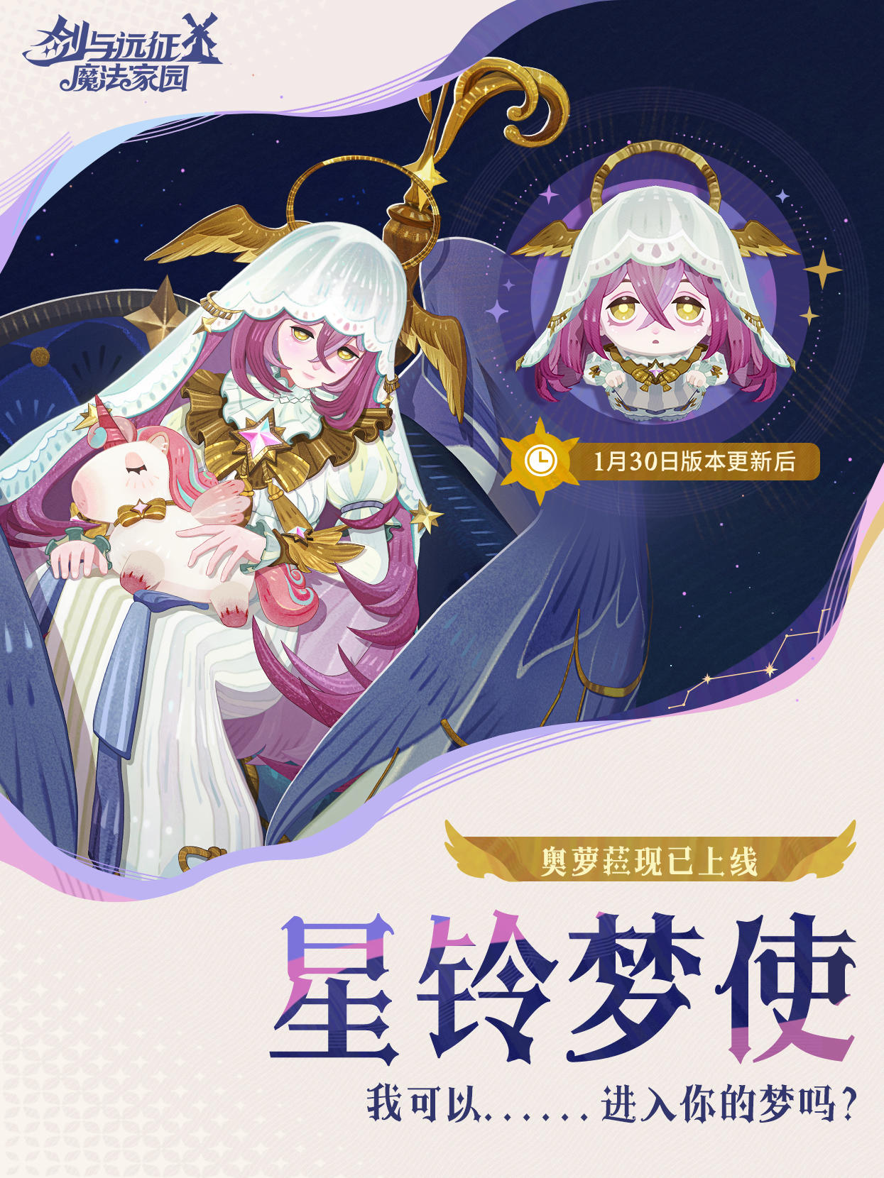 亲爱的大魔法师:超稀有级半神法师英雄「奥萝菈」已于1月30日上线。大魔法师们可以在神秘屋-星源占卜中对「奥萝菈」进行招募。「我可以......进入你的梦吗?」✨ 你将如何发挥「奥萝菈」的力量呢?快来评论区分享你的观点吧!#剑与远征启程 #afk2光影迷局 #光影迷局 #魔法家园