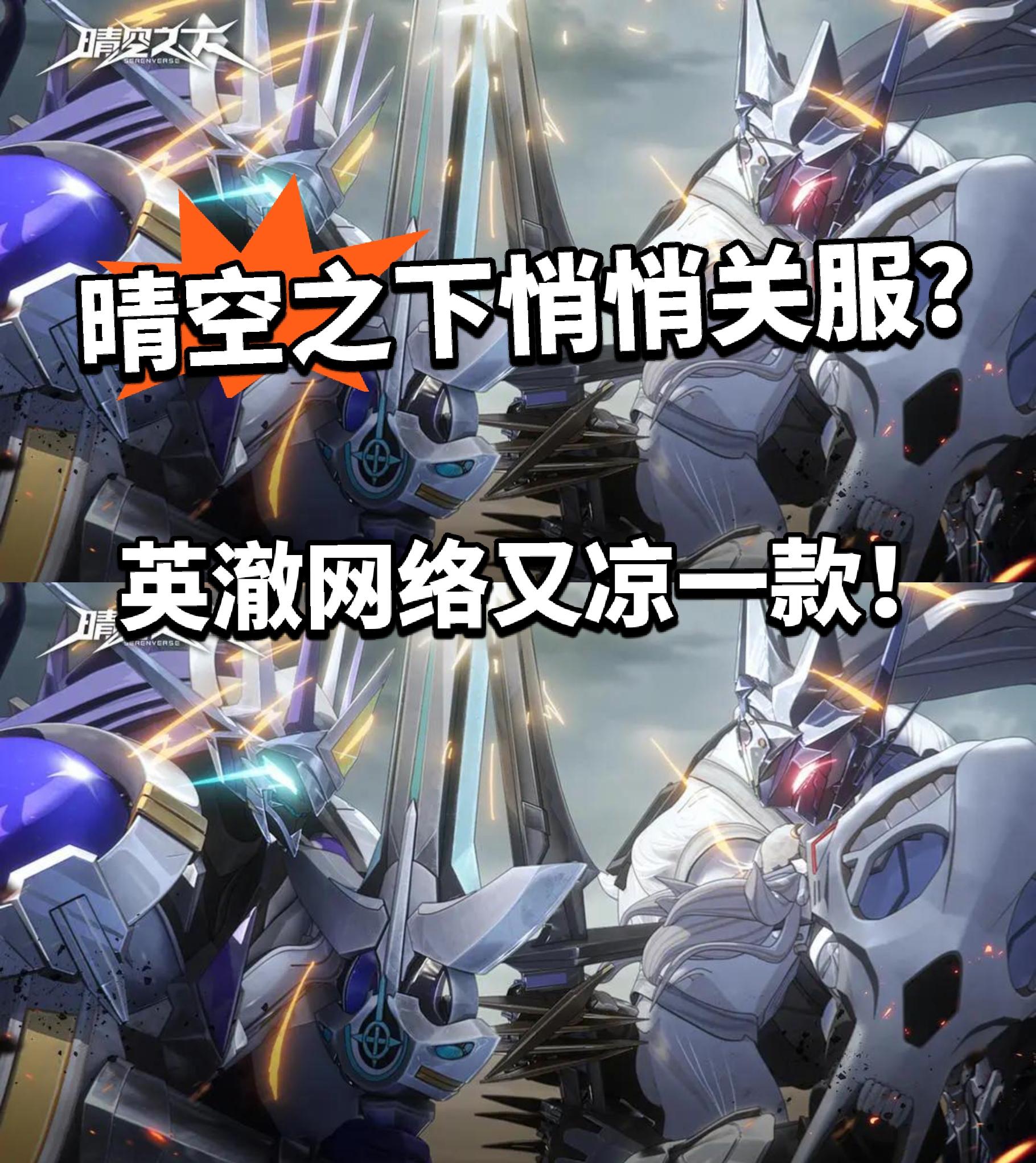 大的来了家人们!近日又凉一款二游!被誉为可以引领机甲科幻风的 晴空之下没发任何公告就直接关了服务器,现在根本登不上去,游戏算是彻底凉透了,消息一出,瞬间引发热议,社区都吵疯了! 游戏首次公测在25年7月份,截至目前仅仅刚满半年的状态 就出现了如此变故!而且关服前早就不行了,长期不更内容,B站官方动态更是一个多月没人管,一看就是早摆烂了。 仔细一看的话,英澈网络简直就是二游坟场,之前做的千年