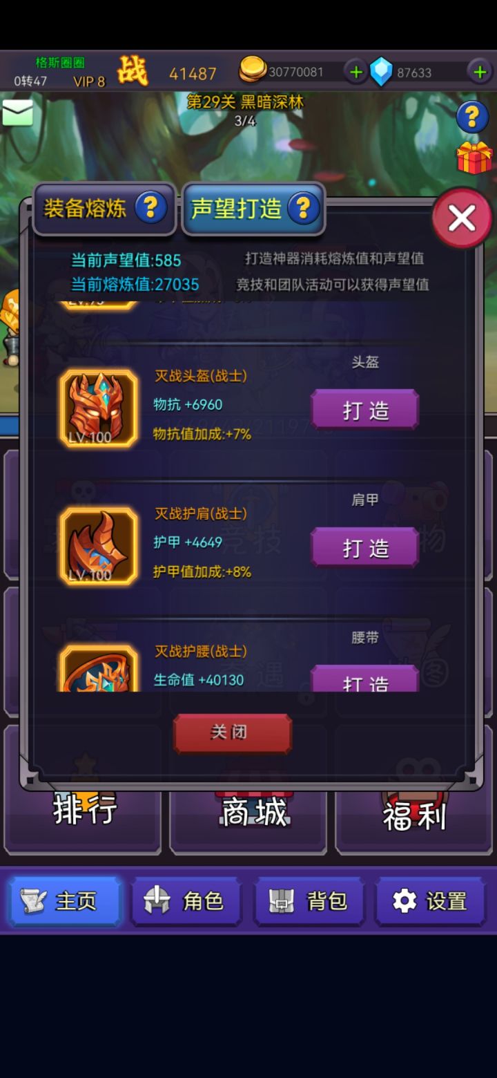 进游戏你的礼包送的双倍都别用,没装备打的低级怪用了也浪费,先打怪有什么装备就穿什么装备别挑剔,然后看广告,有免广告的直接点,(ps看广告是不会打怪掉装备的哦)。你就到vip6了。把奖励领取了。然后刷商店,8折以下的金钥匙,神器碎片,全买,银钥匙砖石多的可以入手,刷商店也需要砖石刷到300就别刷了,我刷到200多就停下了,商店有3个界面,商品 金币 荣誉商店 金币前期 直接全买 强化装备,神器