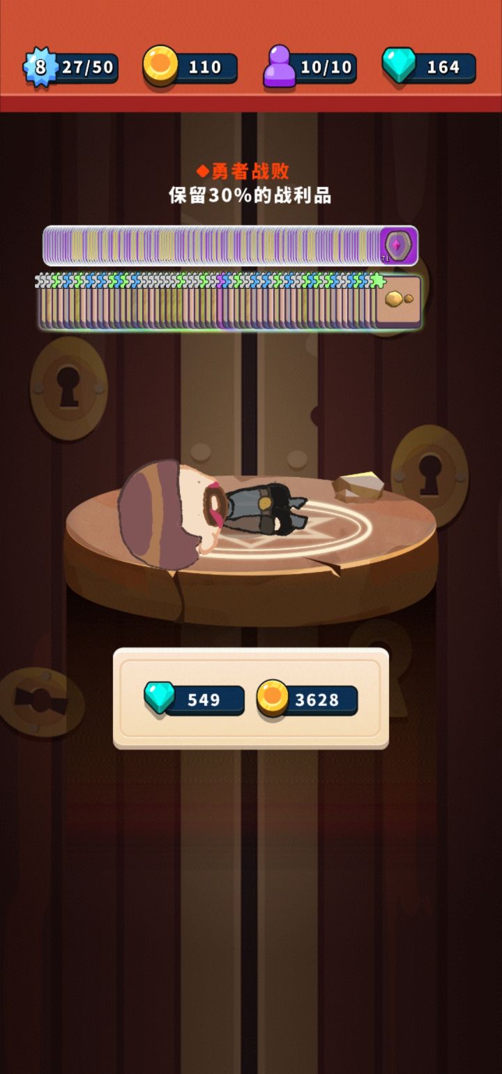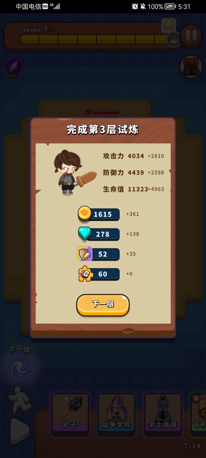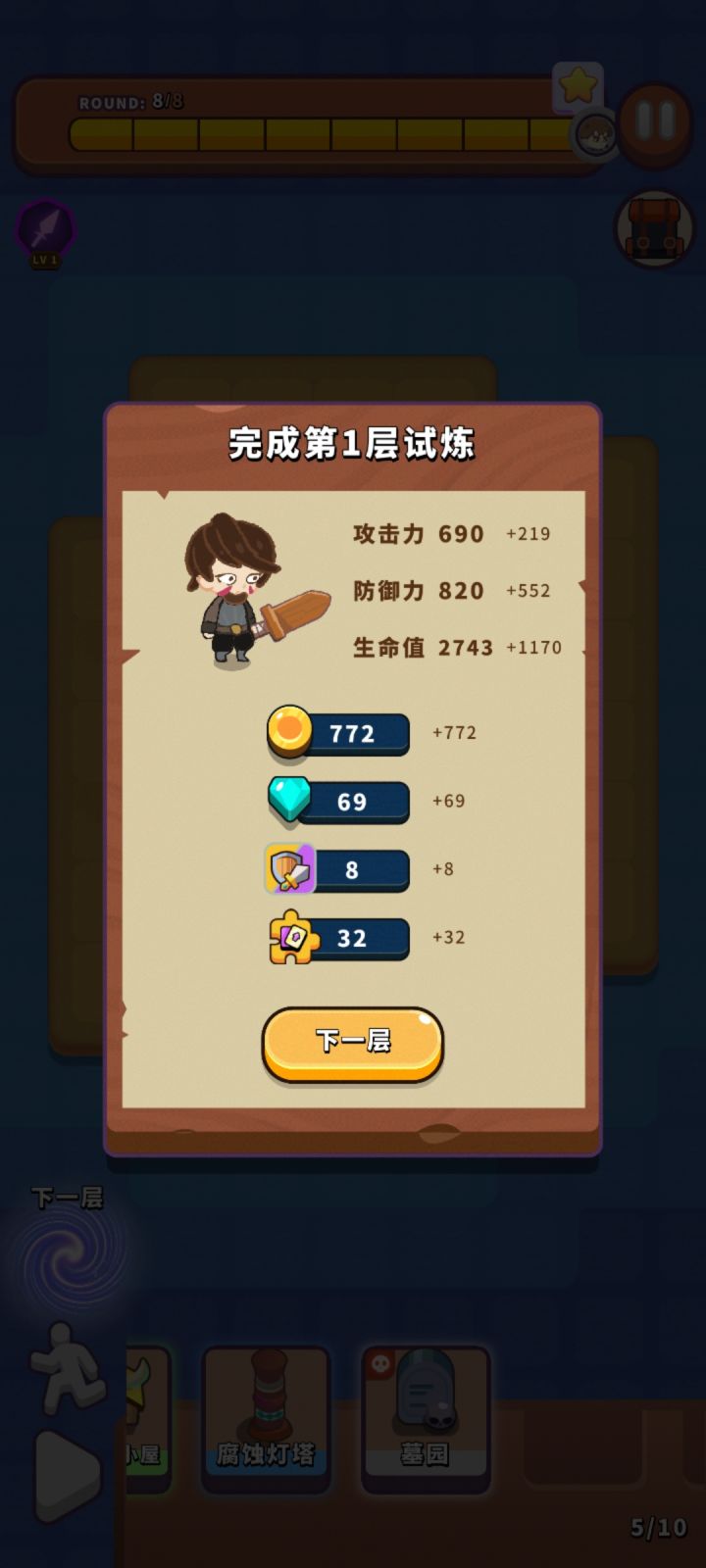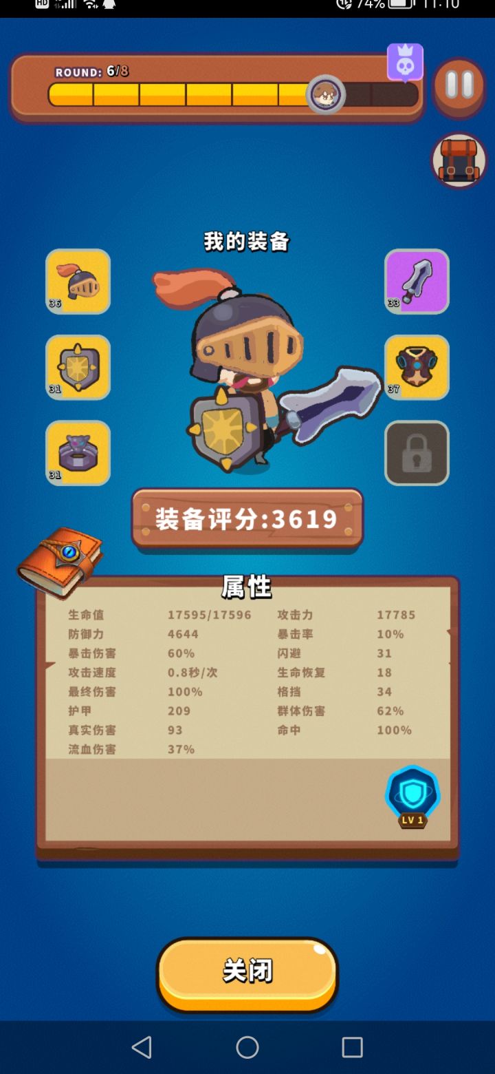 坚持打完了第⑩层,刷怪快刷吐🤮了。主要是卡的。这里希望开发能优化一下。建议每一圈能跳过战斗过程,可选一圈以后再出这一圈的结算报告。毕竟,反正点了开始,这一圈就定了输赢,没法中途挽救!完全可以忽略战斗动画,只提示战斗结果、挑选战斗爆装!我这一把就是一天啊,实在不想割草,无奈点了撤退,其实10层的Boss打我无伤,还可以继续刷的