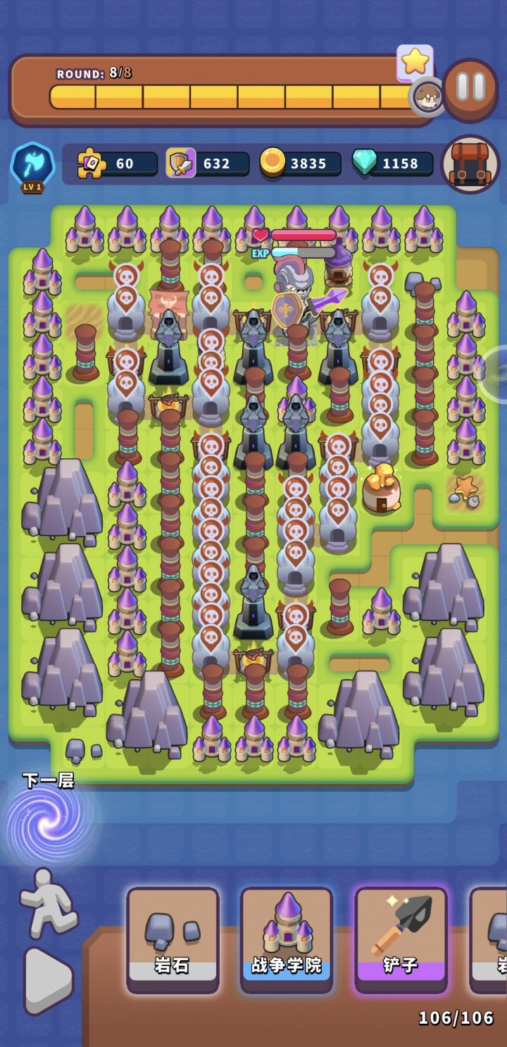 一局打了2天,为了做任务才这么打,后来打腻了直接懒得打撤退了,建议打50关做任务就够了,打高没必要。攻略:1技能优先:学霸>酒神系列>收割>喜新厌旧>其他;2核心是山丘4合1形成连绵山脉增加卡位;3做任务第6关开始不打精英怪不放术士高塔和进化拆精英塔;4不做任务刷钻的话以术士高塔为核心打精英怪,打不过就大退撤退保钻石。