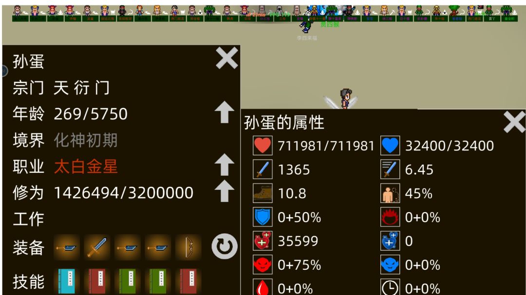 一个简简单单的攻略。 这游戏想玩的爽就得打怪,打怪可以获得妖丹加经验,不靠妖丹,游戏时间熬四十年你也熬不到元婴,不打怪的话时间很浪费,所以开局建议至少选出一个属性血600,伤害120,攻速1.6的角色,进去之后先把所有人的参战给关了,然后就进入愉快的敲书敲装备环节,自己写的书的话,只要留一个史诗诛仙剑诀,其余的全都没用,装备的话敲出一个紫色以上的弓或者杖,洗出攻伤加成,吸血(过度装备15或15%都可以),攻击速度,其余两个人穿盾牌或者剑,因为你拿弓的会先攻击,对面怪物仇恨会在你身上,你的另外两个人进场是没仇恨的,这样能解决掉前期怪物巢打不过的情况,仙人洞府也可以这样解决,具体看仙人的攻击属性和技能,不能被一刀秒(给拿弓的血药拉满)