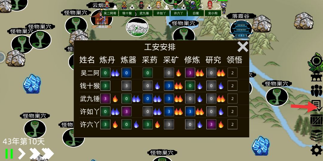 兄弟们,攻略来咯,攻略来咯 来自一个游玩9个小时的测评玩家,可以不爱,但别伤害😅 第一 安排工作,进去先暂停时间,分配工作 第二 抓人(如果你有练气圆满就抓,没就别抓) 第三 让他们搞丹药或者装备,搞完了就装在一个天骄上(注:这里的天骄是指段位第一的人) 这里丹药是没有加经验的,只有打药兽,不过前期建议不要打,你打不过的 第四 抓完人之后在宗门里面招募他(这只是建议,不代表你们玩的时候)