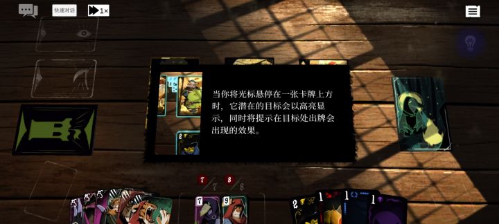玩法和优点:通过消耗卡牌、资源与场景和NPC交互、战斗,运营有限的技能卡牌获取资源,寻找通关方式(轻解密)并达成目标,这点上手玩能更好体会。游戏中有旁白和提示,完全能顺畅通过全程,个人游玩下来全程没有卡牌消耗完的情况。