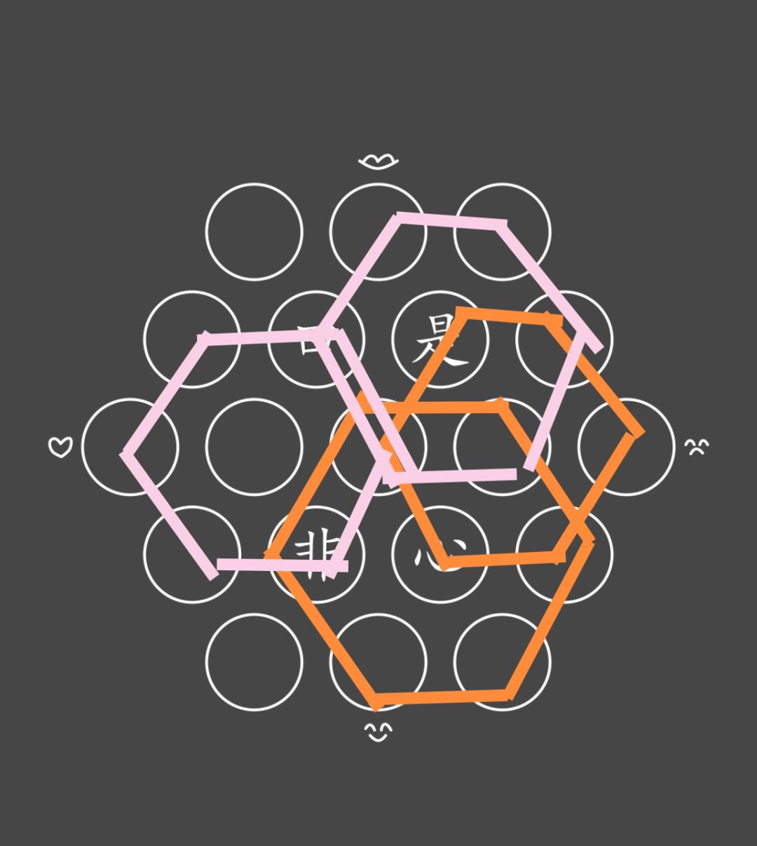 第一关:对准黄色的字,最后组成“镜花水月” 第二关:按圆球旁边的数字,从1到7依次连接,最后组成“朝辞白帝彩云间” 第三关:数文字中“日”字的数量,按上面数字(比如6指的是六个日),得出顺序“藟暑鲁春曡” 第四关:从上到下依次填入诗句中缺失的数字,得“三九三两六四” 第五关:根据鸟中间点的个数得出顺序(比如一个点就是第一个),鸟字朝向哪边就把下面的尖角对向哪边,得“左上右上下” 第六关:在方形中间