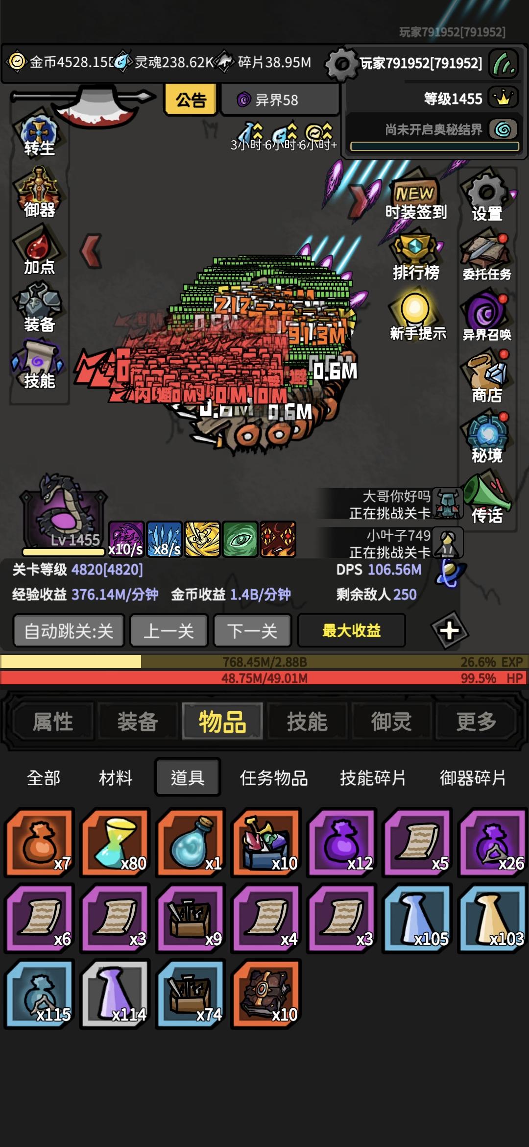 我每天6T转生经验的时候,硬憋85T进了次元4,但是今天转生后第三天了,当前强度打图,还是混沌次元的经验高如果1-2天转生一次,也就是差不多18-25万级就转的话,完全没有必要进次元4,混沌次元的经验碾压次元4我估摸着到30万级之后的战力打次元4收益才能比混沌次元高