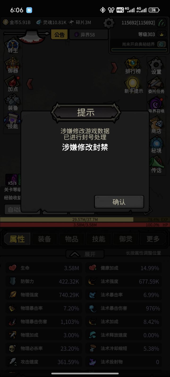 删了游戏数据,然后就被封了,系统检测出bug了?