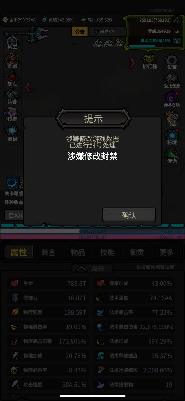删了游戏数据,然后就被封了,系统检测出bug了?