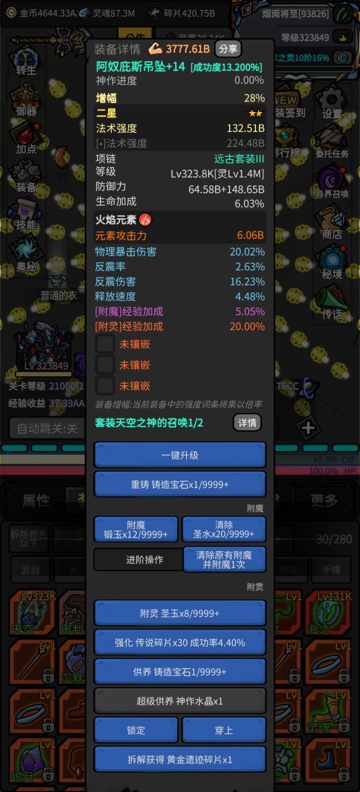 新手开局建议玩技能流(当前版本)开局呢视频全看技能宝箱,除了天星地爆 天雷术 火球雨 灵场,其他技能碎片全部分解换技能宝箱。包括魔法弹也分解(分解后在商店右上角兑换)开局精血全部点智力,神圣不着急点,力量跟技能流没关系,血量就是摆设。大概10000点精血的时候就可以给神圣点500,70闪避真的很舒服龙塔1000关之前给的东西特别多 1000-10000就变少了 往后会没有奖励刚开局装备尽