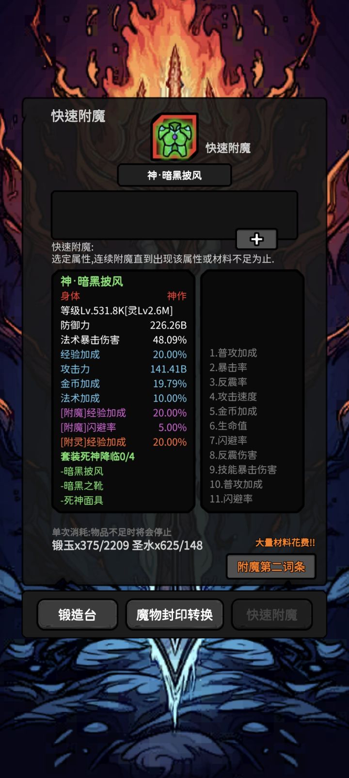 新手开局建议玩技能流(当前版本)开局呢视频全看技能宝箱,除了天星地爆 天雷术 火球雨 灵场,其他技能碎片全部分解换技能宝箱。包括魔法弹也分解(分解后在商店右上角兑换)开局精血全部点智力,神圣不着急点,力量跟技能流没关系,血量就是摆设。大概10000点精血的时候就可以给神圣点500,70闪避真的很舒服龙塔1000关之前给的东西特别多 1000-10000就变少了 往后会没有奖励刚开局装备尽