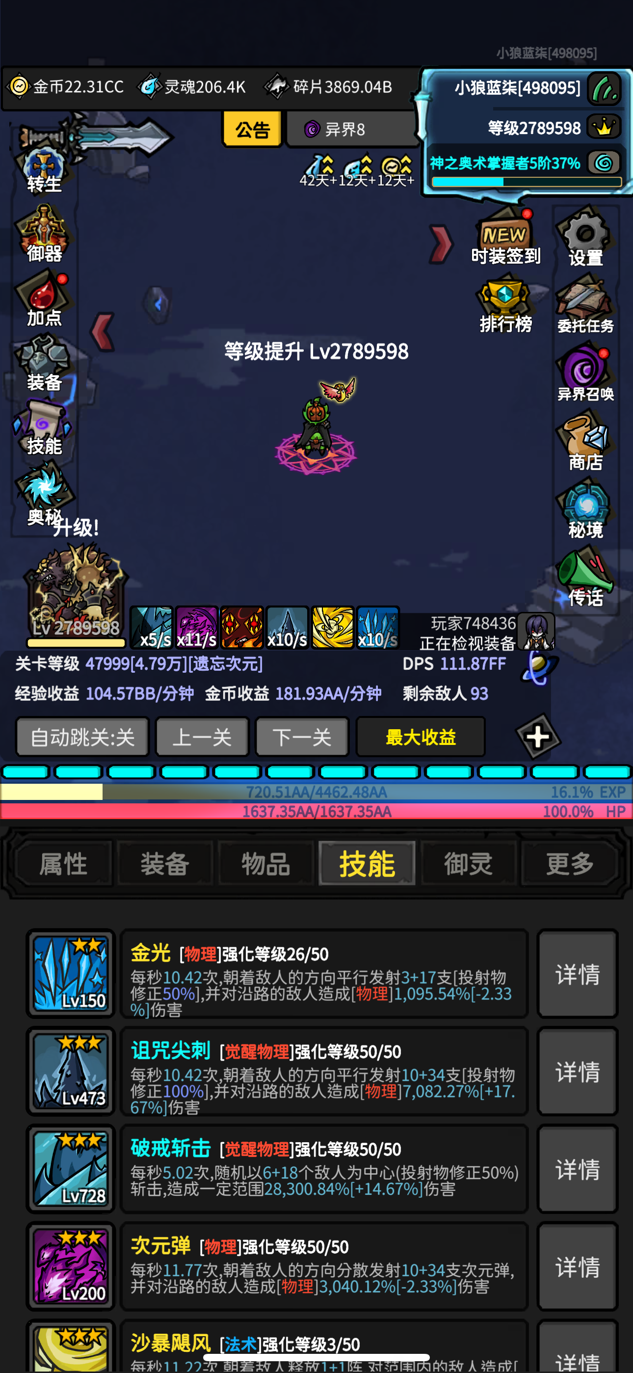 我每天6T转生经验的时候,硬憋85T进了次元4,但是今天转生后第三天了,当前强度打图,还是混沌次元的经验高如果1-2天转生一次,也就是差不多18-25万级就转的话,完全没有必要进次元4,混沌次元的经验碾压次元4我估摸着到30万级之后的战力打次元4收益才能比混沌次元高