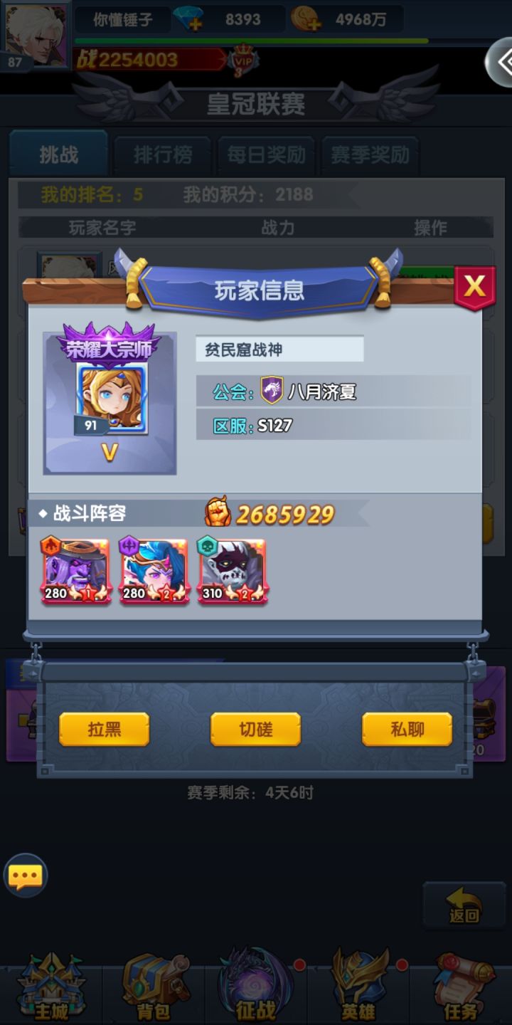 3.不要氪佬比!我是从排行四十多名慢慢爬上来的,不要有跟人比的心里,学会屯货,利用好资源,需要屯的有两样:高召,起源,没有活动一定要管住手!