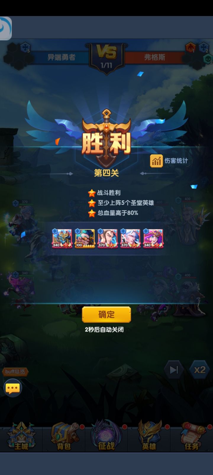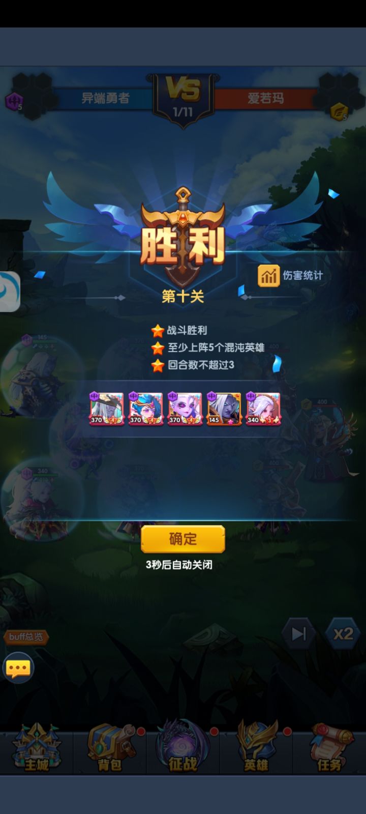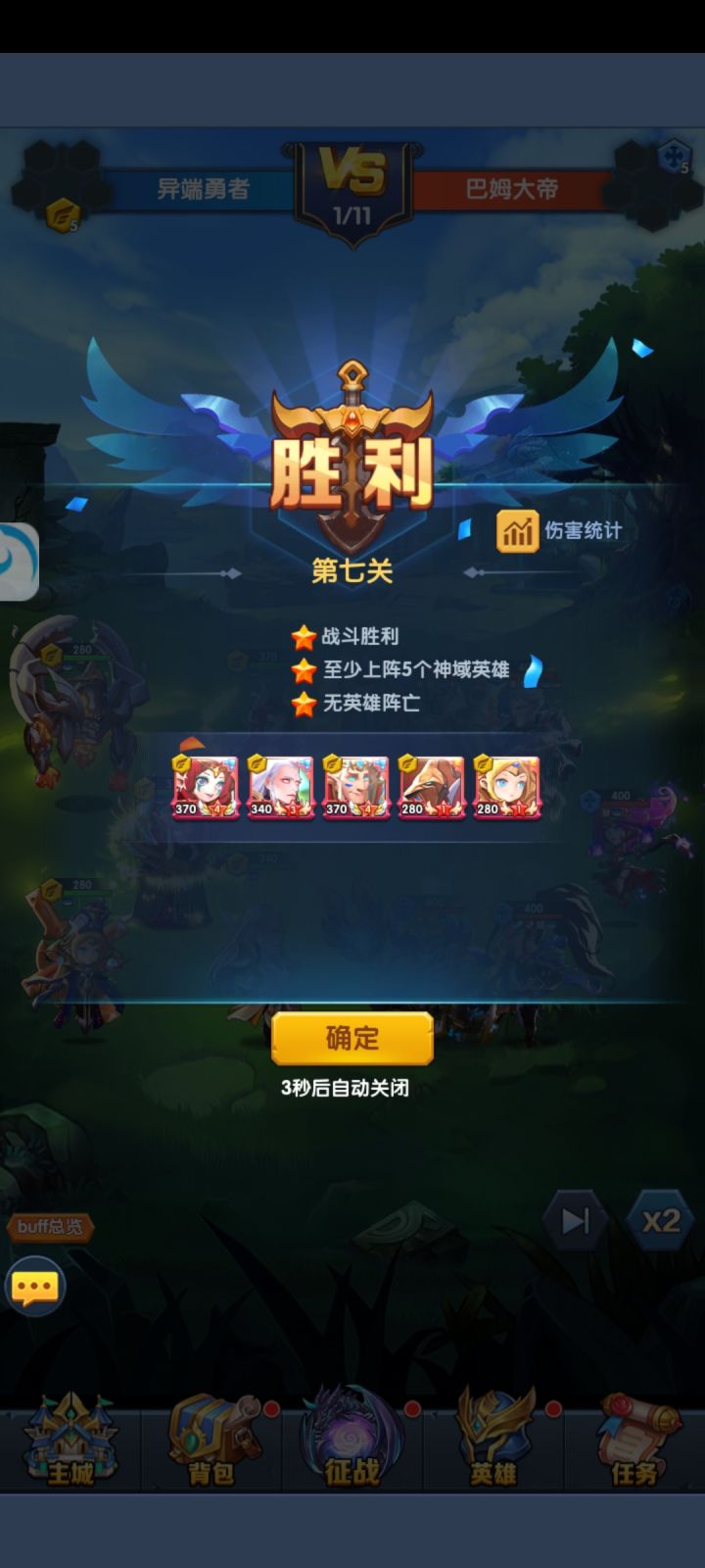 然后就是英雄培养,开局火女会免费送两张,是最容易升到9星的,优先火女9星,抽到两张奥利给把火女重置,所有资源灌给奥利给,剩下的资源灌给男爵,上面四张光暗抽到哪张就培养哪套阵容