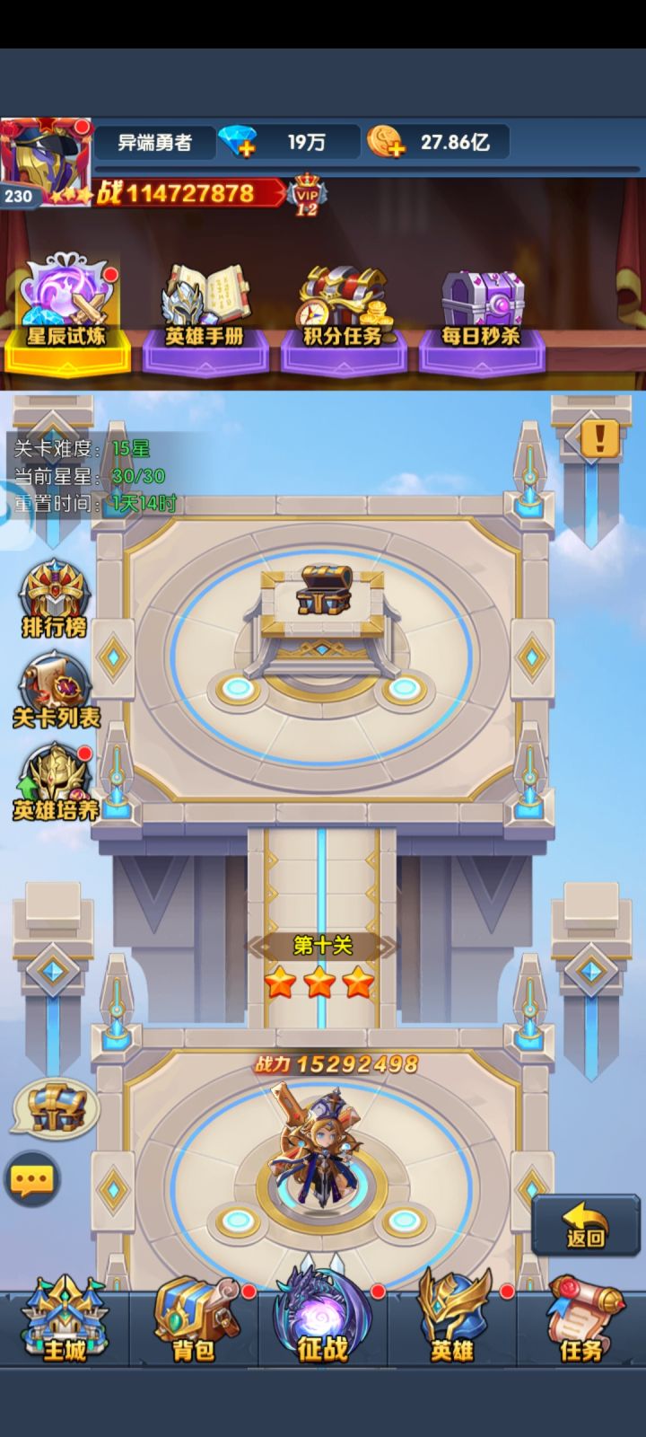 目前很多卡本体是完全足够的,都可以升3星了,但是没有神王印记,升不上去,经验也是一样,一些常规玩法可以等公会祝福开了再打,算是薅点蚊子腿,积少成多