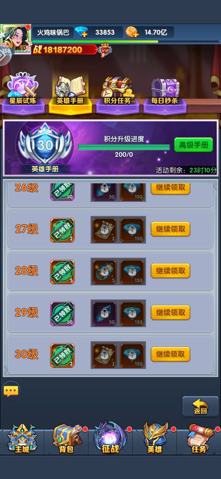 一,阵容及优先升级顺序就合并了:奥利给…弗格斯…末日…夏…艾丽西亚…雷神<图一>原因:星辰试炼只计算等级和技能,不含天赋和装备加强,所有的英雄开了图鉴就能上二,开局就T字占位,猛怼,打不过就堵弗格斯的控制反复打,大约能超越20%战斗力过图。过图优先 过图优先 过图优先,别纠结完美,活动天数差不多够你领完奖励,不够的去前面的补一两个图到三星完美<图2>,更高的图能够更快的获得升级资源三,冲