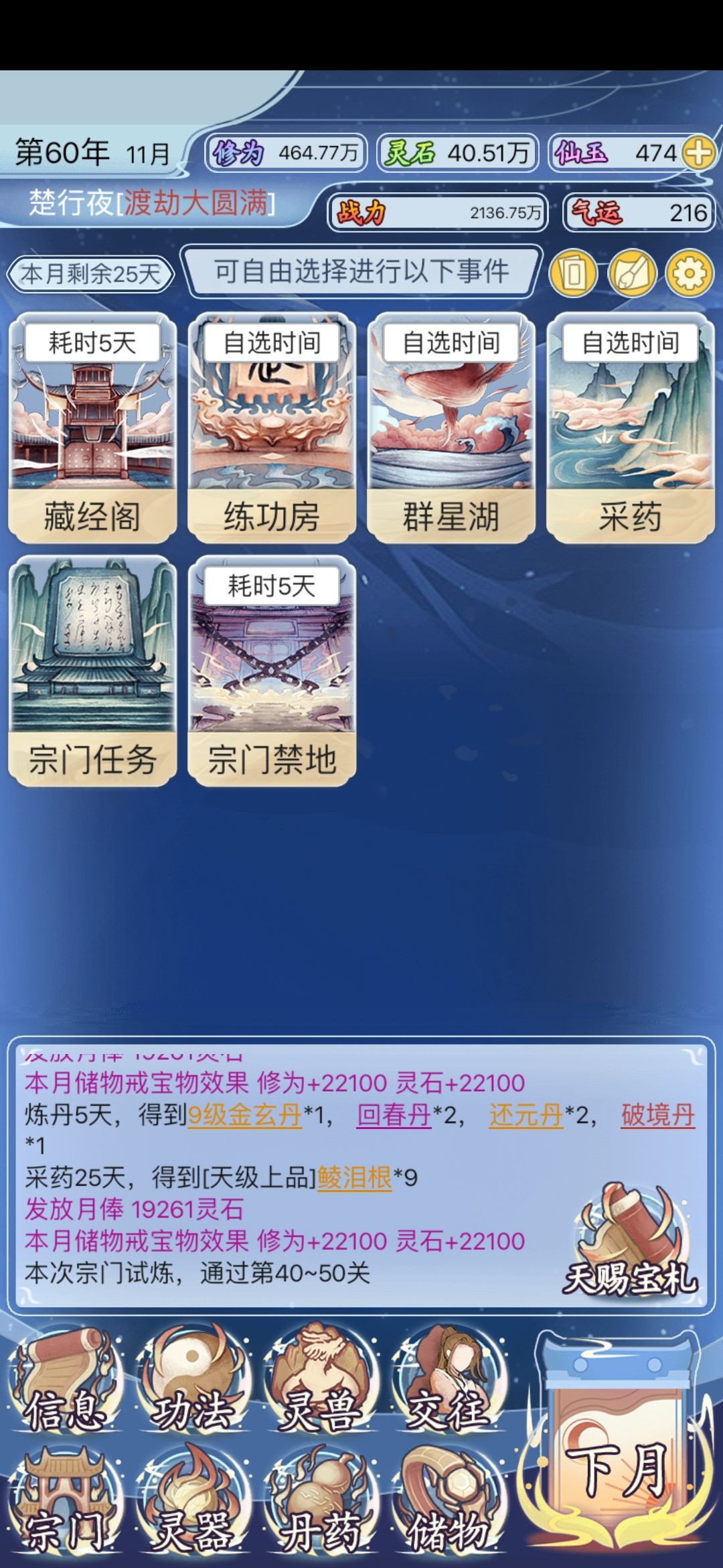 前期一路莽到合体,这个时候必须要炼丹了,这时候破镜大概百分之40的出货率!