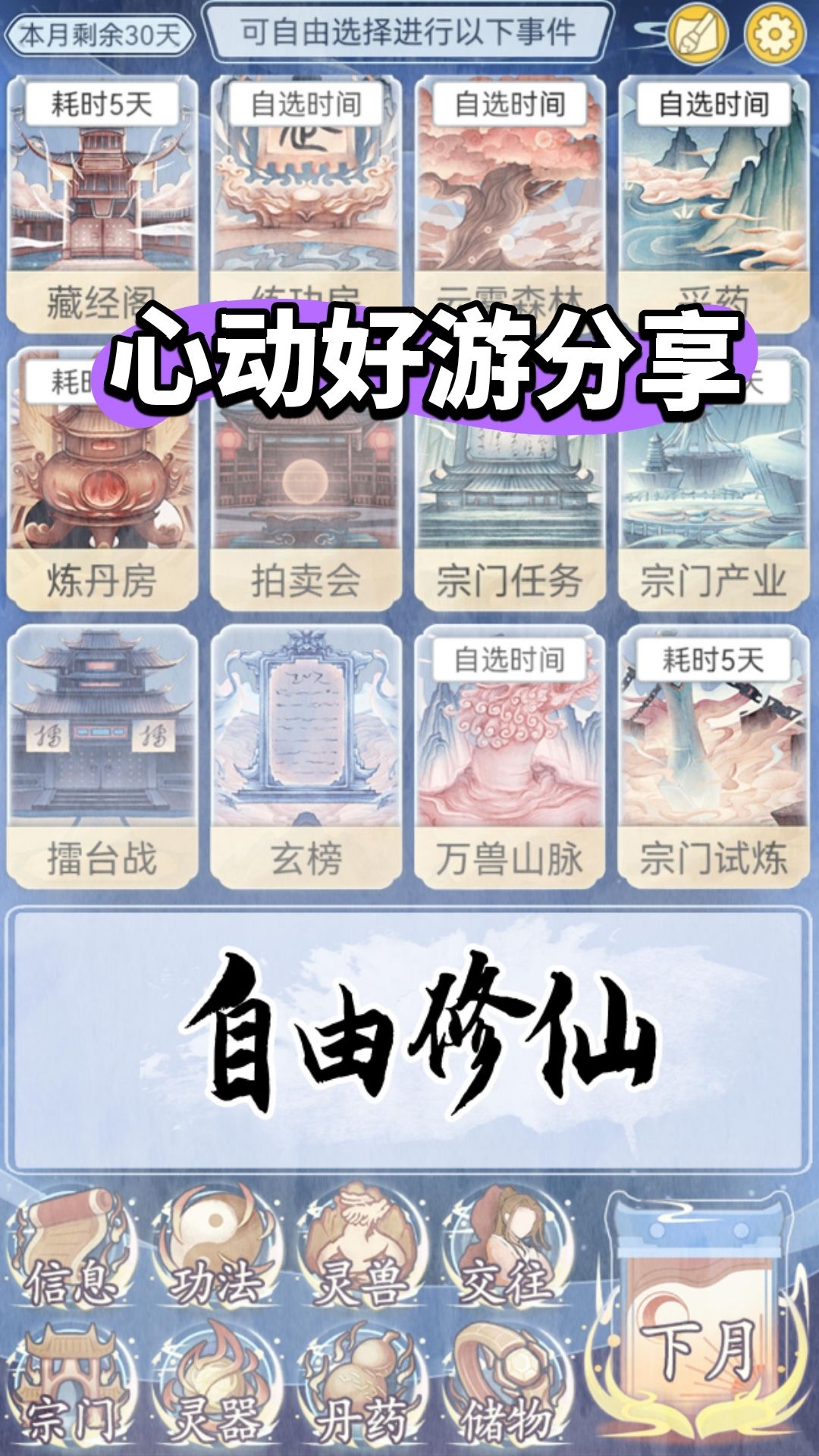 那么开局开始,无脑冲修为,有宗门贡献任务就做(做到内门能点藏宝阁两次就行),藏宝阁出了必点!(前期不用管战力一路升修为升上去就行!)