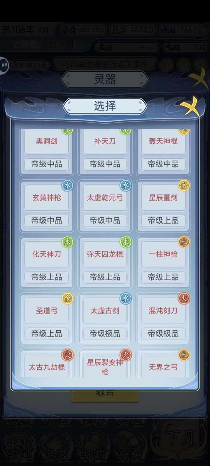 功法:分金木水火土通用6种属性,上限练满可以学18本功法,但是每种属性帝极功法只有两本,需要学帝上功法填补神器:目前为止没有刷出过10级兽核,建议是各种等级的兽核收集够,不然高等级很难刷出低等级兽核(目前为止我4级兽核不够神器没升满)灵器:帝极灵器只有水火土三种属性,别去刷其他属性的,刷不出来。宗门贡献:很坑爹,外门护法到长老需要整整1万贡献点,但是最高的宗门试炼一次打满也才50 60左右。