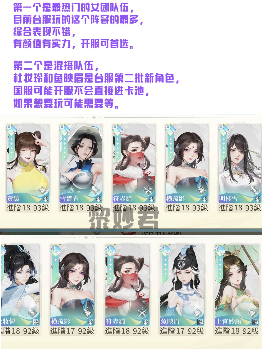 台服玩了一个半月了,玩的时候是两眼一抹黑,找不到半点攻略,都是自己摸索着来的,国服内测,只测试7天感觉也没有写攻略的必要,不过也不能一直没有,所以打算靠自己的经验写一篇新手攻略出来,等开服的时候也能有点作用,不过可能较为简略,大家凑活着看吧 (此贴不涉及阵容推荐,因为我是玩单机的,只能现在稍微说一嘴,如果不在乎男女只看强度,公认的鬼王队,开服一周入驻池子,强,很强,我们宗门一个从老区来的说在老区