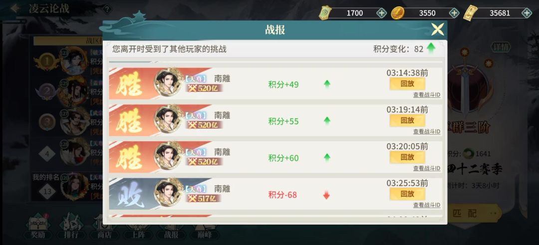 阿纨打肉伤害特别高,后面的传导感觉有问题,一个绝技绝五司徒满血到濒死,后面的2个还在看戏吃瓜。本来应该一列都融化了。这个卡就是给了没绝五薄的人一个越战的机会。想起前面几天还有人硬凹阿纨不行的,想着真的想笑。
