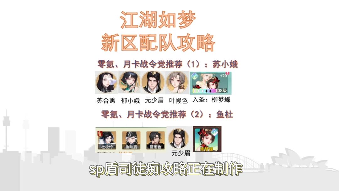 推荐零氪、月卡战令党的两套开荒阵容。 新sp盾司徒痴的攻略正在制作中。#江湖如梦 #攻略 #新区 #配队