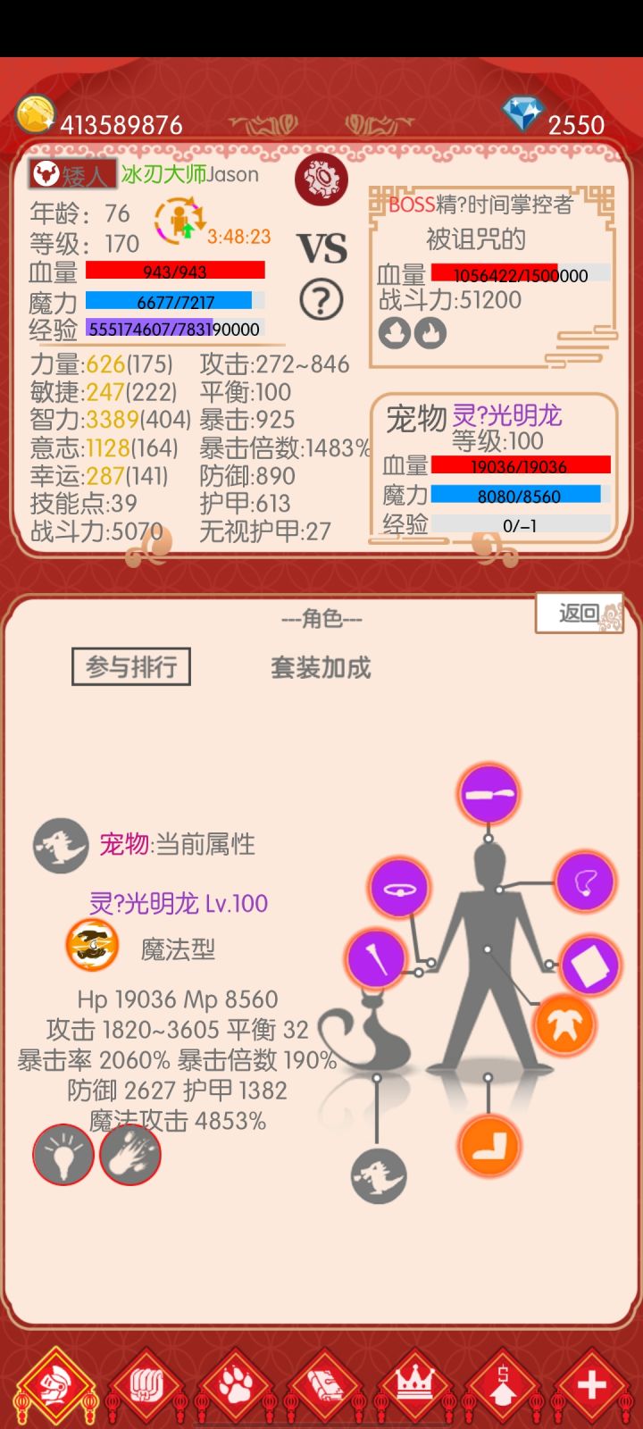 第二,个人觉得boss出现频率和打怪速度不太好,刷高级怪的时候本身回合就多,然后boss出现也少,这样就拉长了变强的时间,更何况爆出的装备和宠物也是随机的,节奏就慢了很多,所以说能否考虑一下战斗速度加速一下?再不济你把加速次数再加两次嘛!