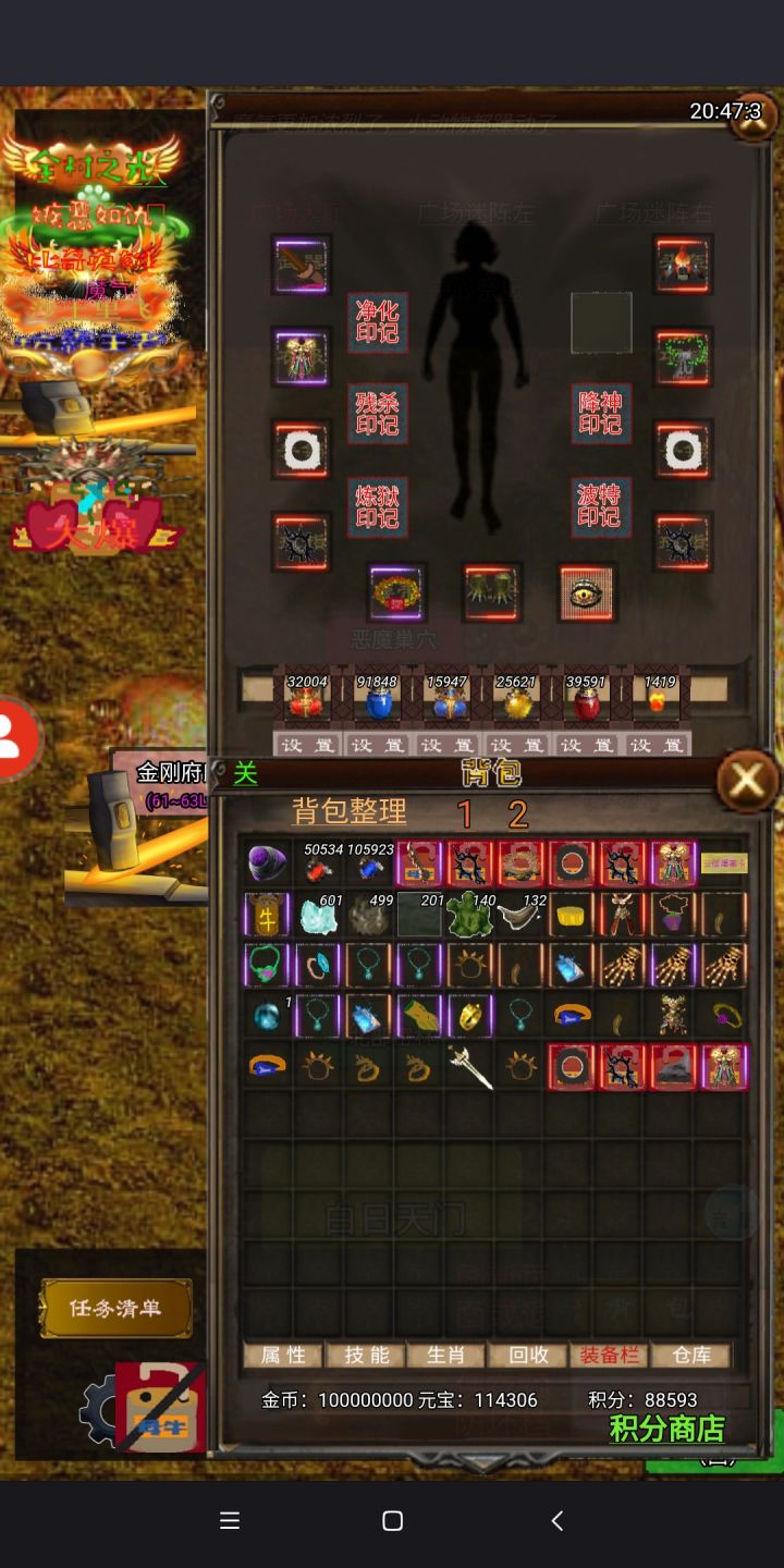 新手攻略首先攻略仅为参考,也可以按照自己的方式自行摸索。新人请关注公众号“影子传奇”,里面有新手码和两天一个福利码。下面说正题:开局用新手码1987520直升28级,还有元宝和积分。在用另外三个新手码:11074、1080、1086。打开背包点装备。人物两侧有六个铭文框,以123的方式开三个铭文槽。刷出波特+炼狱+残杀(净化也可)。铭文位置无所谓,是那三个就行,铭文槽得按我的顺序开,否则会多花元宝