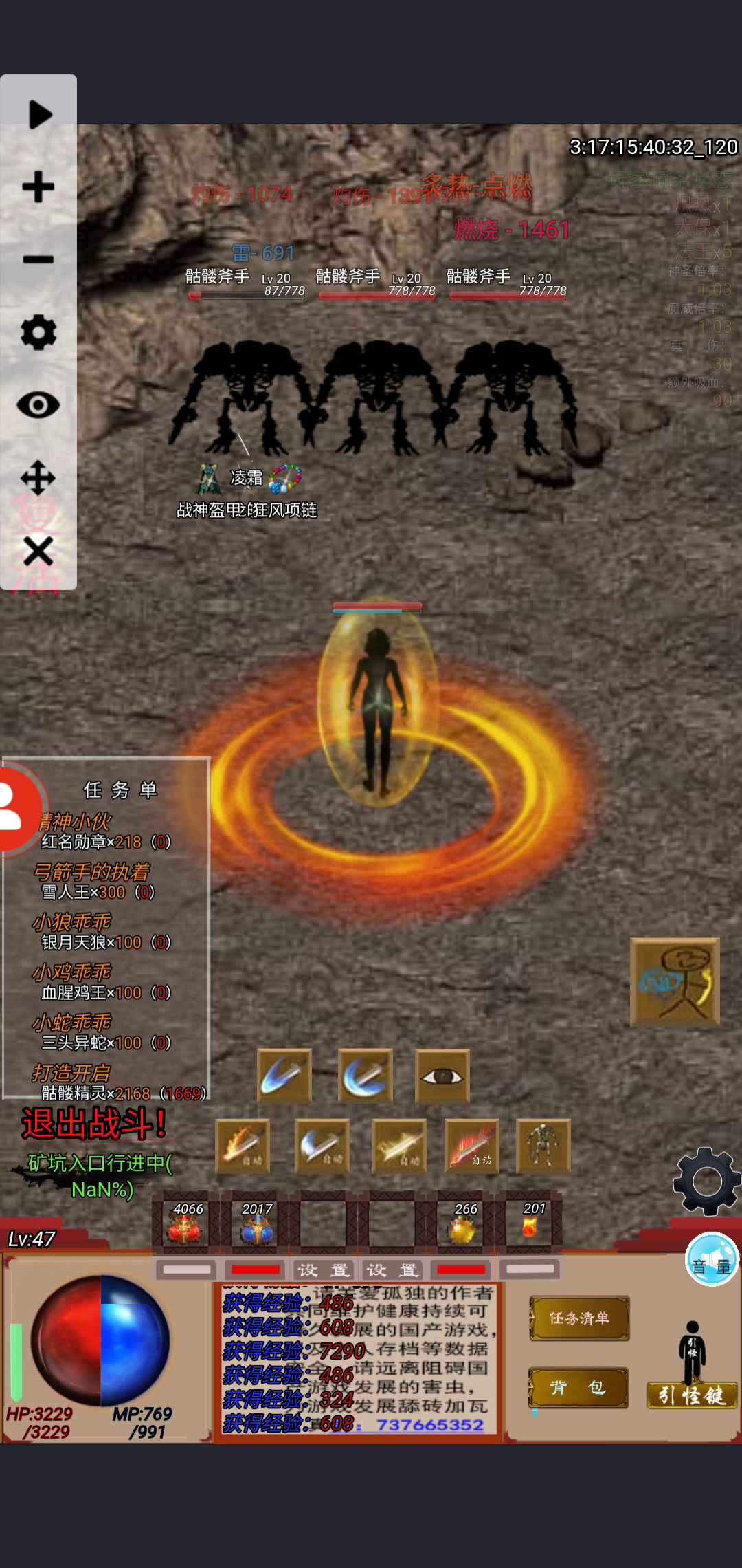 ⑥回去挂尸王,记得接杀2888尸王坑霸称号,我们挂着直到爆出尸王衣服为止,技能书该用就用,9级升10级技能上不去,攒个30本,一起点,成功率高些