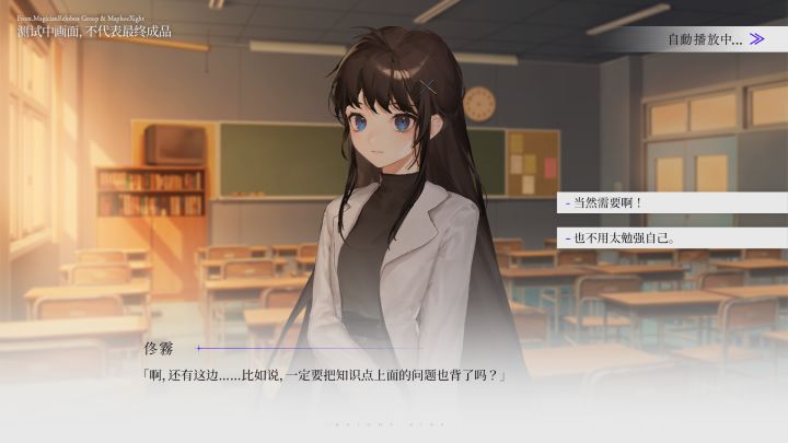 经过漫长的制作,我们已经舍弃了由AI美术为主的制作方式(会有严重的版权问题,在这里对制作早期提出意见的朋友表示感谢),转而打磨更高精度的游戏画面及美术效果。游戏的故事也正式来到了某所国内高中(?),你将扮演一个数着日子上学的文科生,也希望能增加你的代入感~总而言之,经过了不断的修改,《构想彼方》的美术资源和核心剧情已经完成了初步重制!跟随船新介绍页的脚步,来了解新增的要素前瞻吧