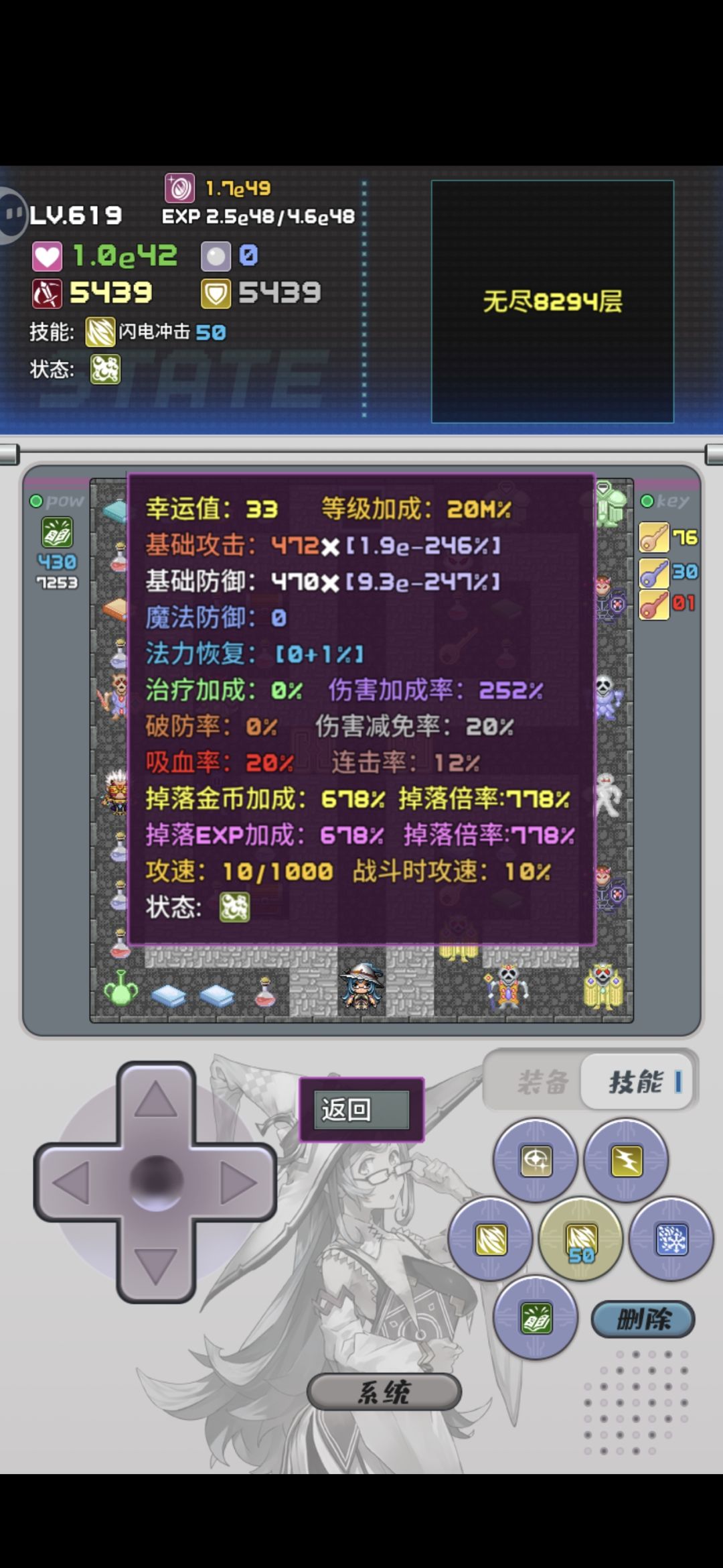 我是萌新所以前面省略,后面省略 1k层前这魔王还能蹭我点血,1k层以后已经开始唱征服了,估摸后面已经无解肥了,当时把这游戏下回来发现要重玩,然后领了66碎,一眼就相中了这角色,然后刷到天空城DLC,低难度直接冲无尽1k层转生一次,然后直接开500+,没点高级敌人和半满蓝条。 忽然发现这货攻击力是个x,意味着我特娘的只需要点防御,这是什么强度? 再细读技能,WTF,复制敌人攻击还15%吸血?后
