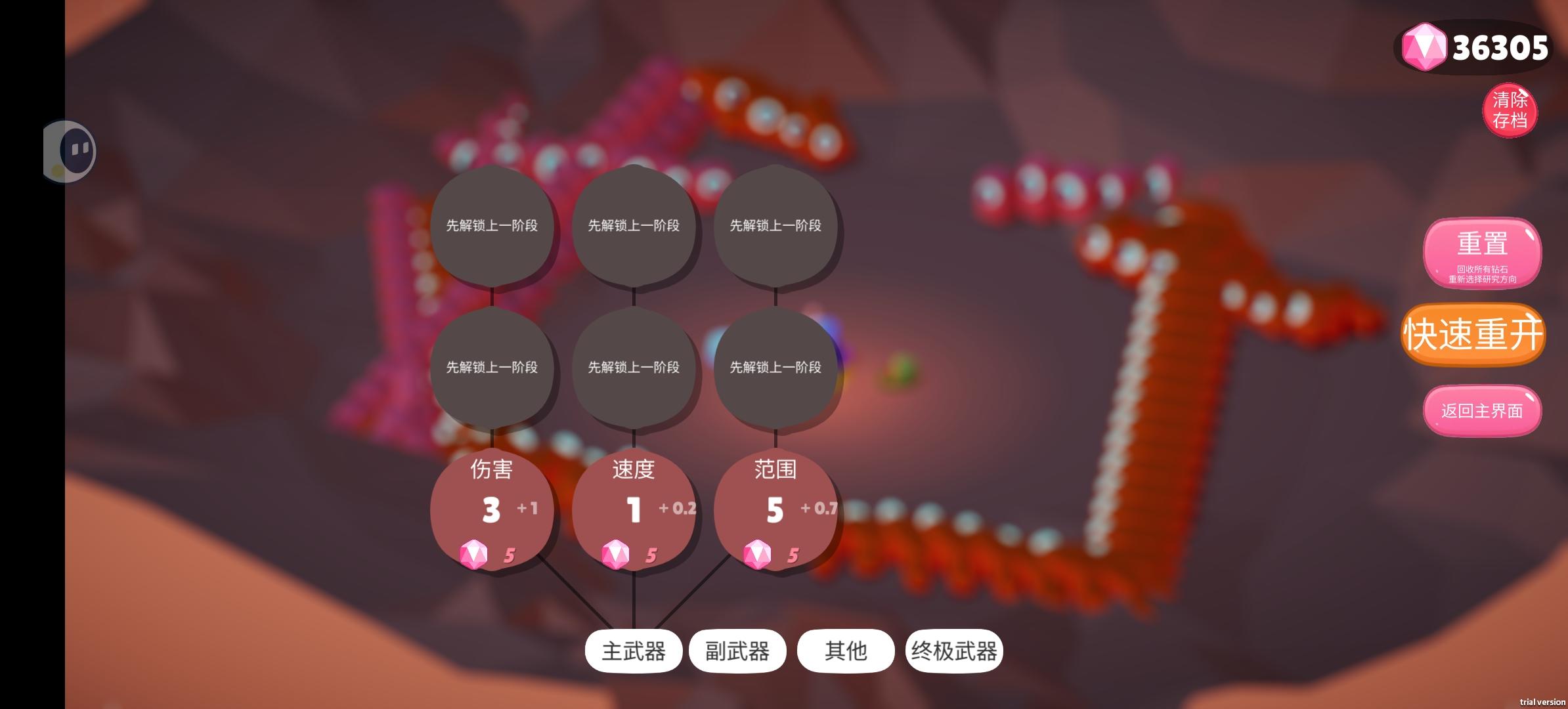 每一局结束后,都会结算相应的粉钻,可以用于场外升级,场外升级的速度比场内更慢,但是直接抬升固定基础,所以这游戏适合后期游玩;但是这只是理论设定,能不能坚持游玩下去是一件不容易的事。