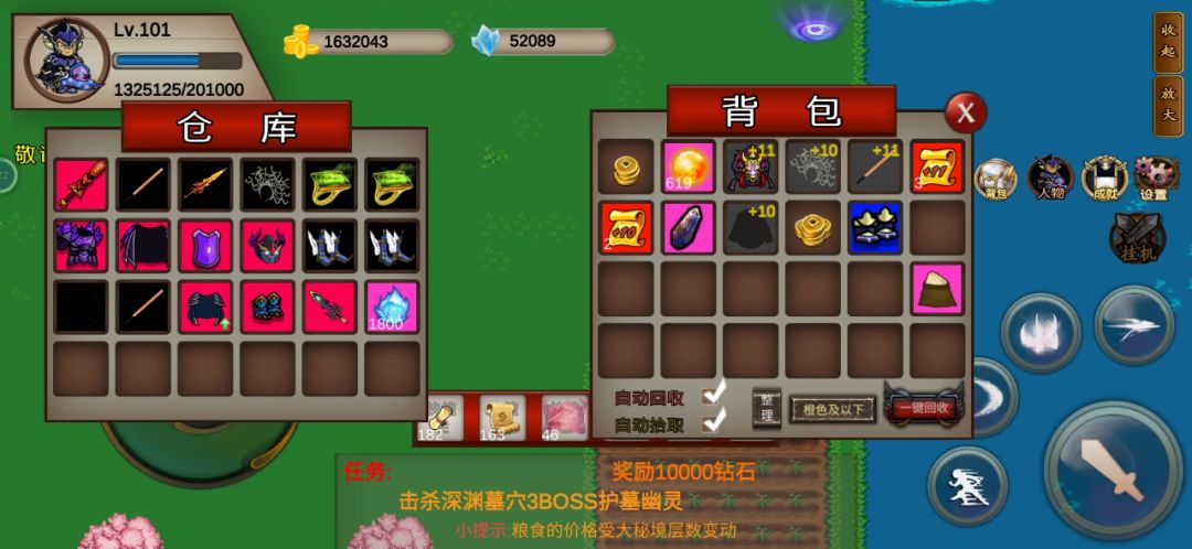 我只用2格的灵魂举例,精华 金币 钻石皆可如此。可以攒多几格再去打,一般来说最多20多格。最后把一格放仓库,来回双击进行重叠就可以了。另注意:材料只显示5位数,过10w仍只能看到前五位数。
