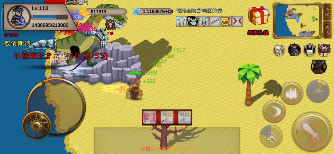 进图前先把狂风攒满,复活戒指必带,随时切换保命,实验室里有四个角,分别可以朝斜对角传送,小激光可以不用躲,一直砍能撑住,遇到大激光,要么传送躲,要么用大招,复活戒指都不太好使,大招释放的时间必须算好,不然还是死……血量很关键,能堆血的尽量先堆血,5w顶不住小boss挠两下😅继续肝