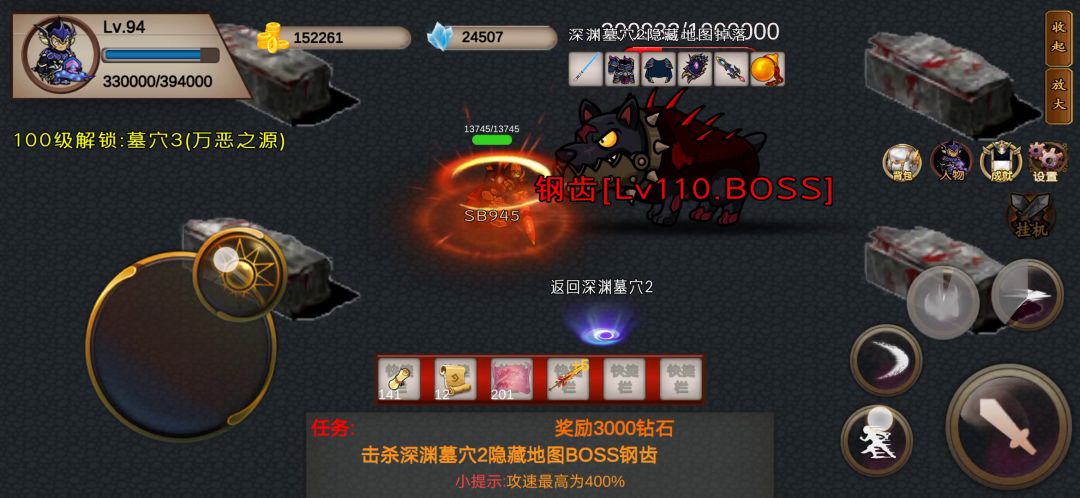 你们好,我是阿晨,游戏名字9527 很多新手玩家不知道如何过墓地三发这个视频是想告诉大家墓地三如何过。 一。必须配备装备!斩杀!橙光!幻影! 这是三个容易出的神器!也是一直用的后期的神器! 话不多说!上过关方法! 过关难点一! 去隐藏3秘境的棺材! 很多萌新玩家没到棺材或者刚到棺材复活就没了。 这个是因为不熟悉图!不熟悉地刺攻击频率! 所导致的! 所以可以在进入秘境三的时候 点传送boss冲刺一下躲避进图地刺 传送到副本boss图直接右下棺材一个冲刺躲避boss跟地刺攻击然后左上角一个冲刺步行到秘境boss副本入口 多练习几次。复活也不会浪费。 墓地三秘境boss攻略 传送以后直接换复活戒子冲到漩涡! 回来打boss别竖着回来。斜着走因为竖着走百分百吃地刺。然后利用橙光狂风。跟斩杀收割就行。 重点注意地刺跟鬼手。鬼手伤害20000血低的萌新顶不住的。地刺6w6还是可以的,地刺攻击频率2秒一个 通关窍门口诀! 身斜走,莫竖行,切被动,打爆发。漩涡出。复活留 本期讲解就到这里!拜拜!
