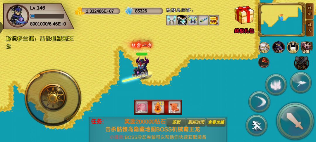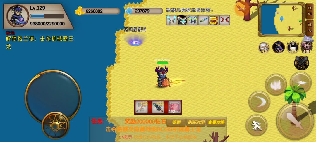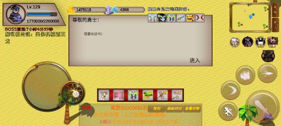 对了,这游戏有个bug我不玩了,我把bug告诉大家boss打完,然后关网把时间调到第二天等5秒,然后回城再开网络可以无限刷新boss