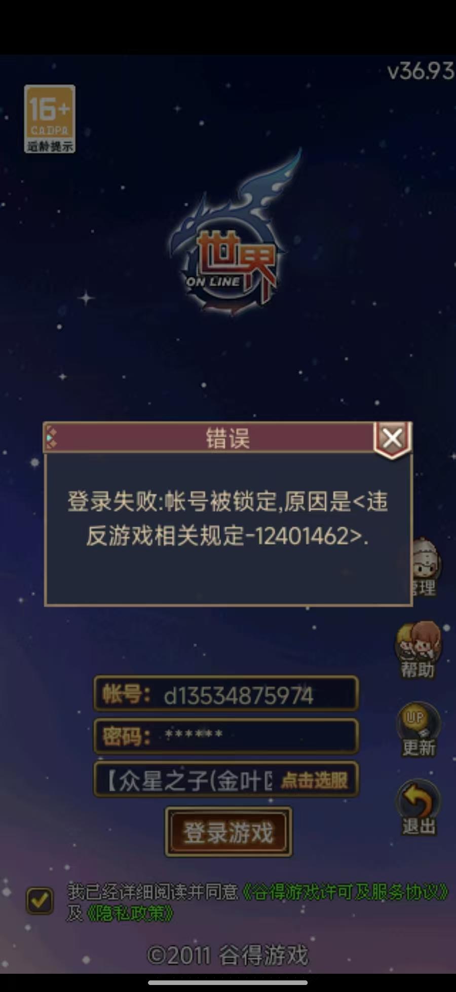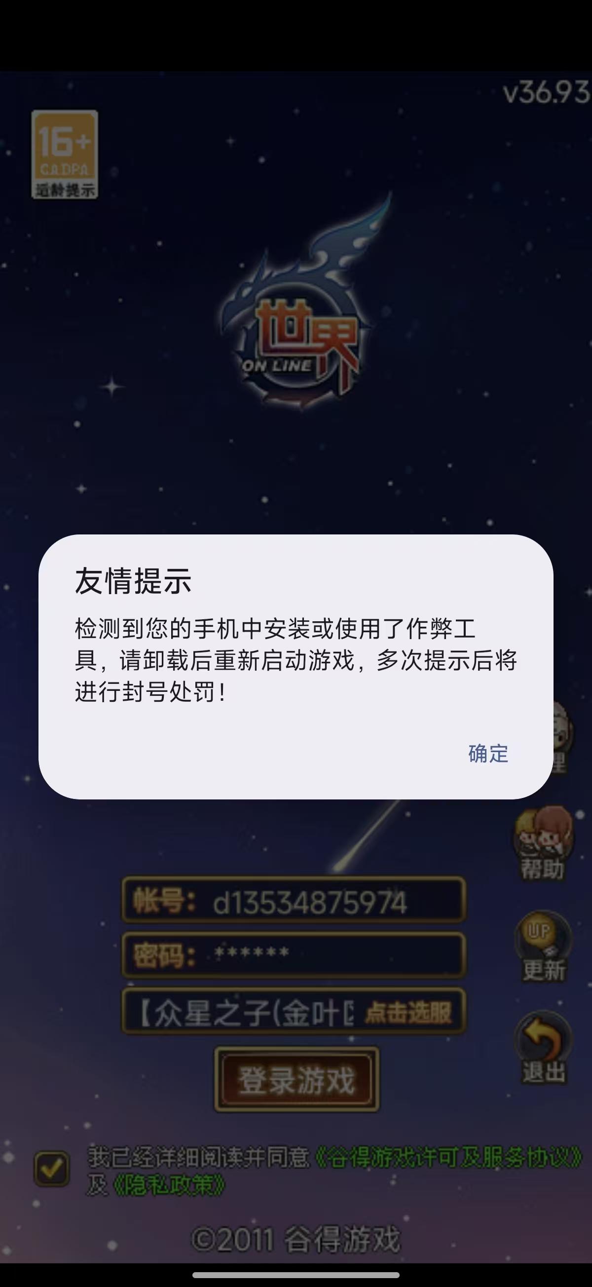 2025.12.17上午---正常游玩2025.12.17下午---发现更新,直接进行更新,跟新完成后,立马点击游戏进入游玩,然而进入后直接提示手机含有作弊工具,我再三确认我没有相关的工具,于是我直接点击确认,我怀疑app检测失误,再次点击确认,然后最终结果提示登录失败,账号被锁定。PS:我反馈客服后,用其它的号登录都是OK的,并且期间手机未做其它操作,我觉得世界oline这个游戏有问题。20