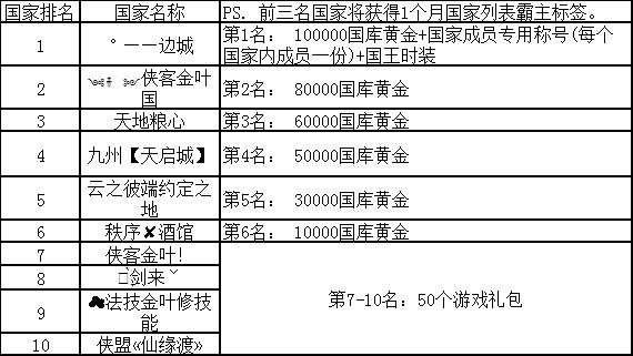 《世界ol》跨服pk赛获奖名单