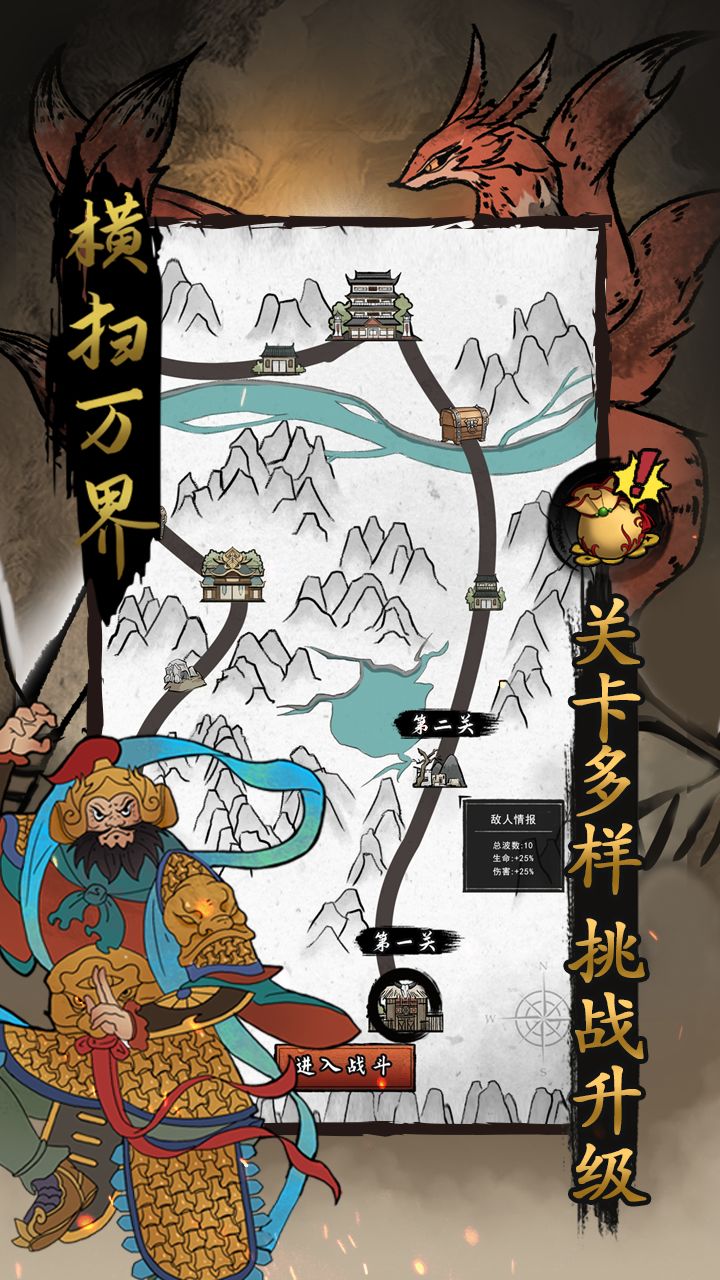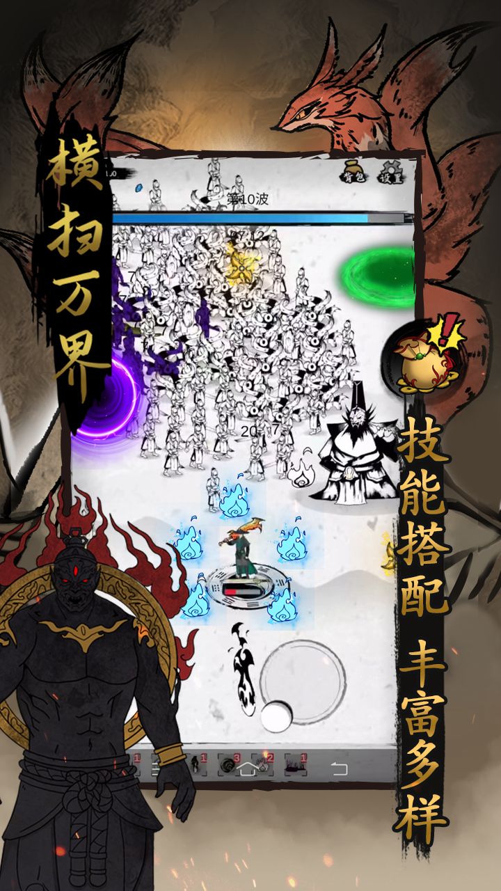 《横扫万界》是一款轻度rougelike类游戏,敌人如潮水般涌来,你必须生存下来并获取更加强大的神威!组合绝世神威阻止一切来犯之敌!同时利用获得的灵石精炼自身,成为最强修仙者!