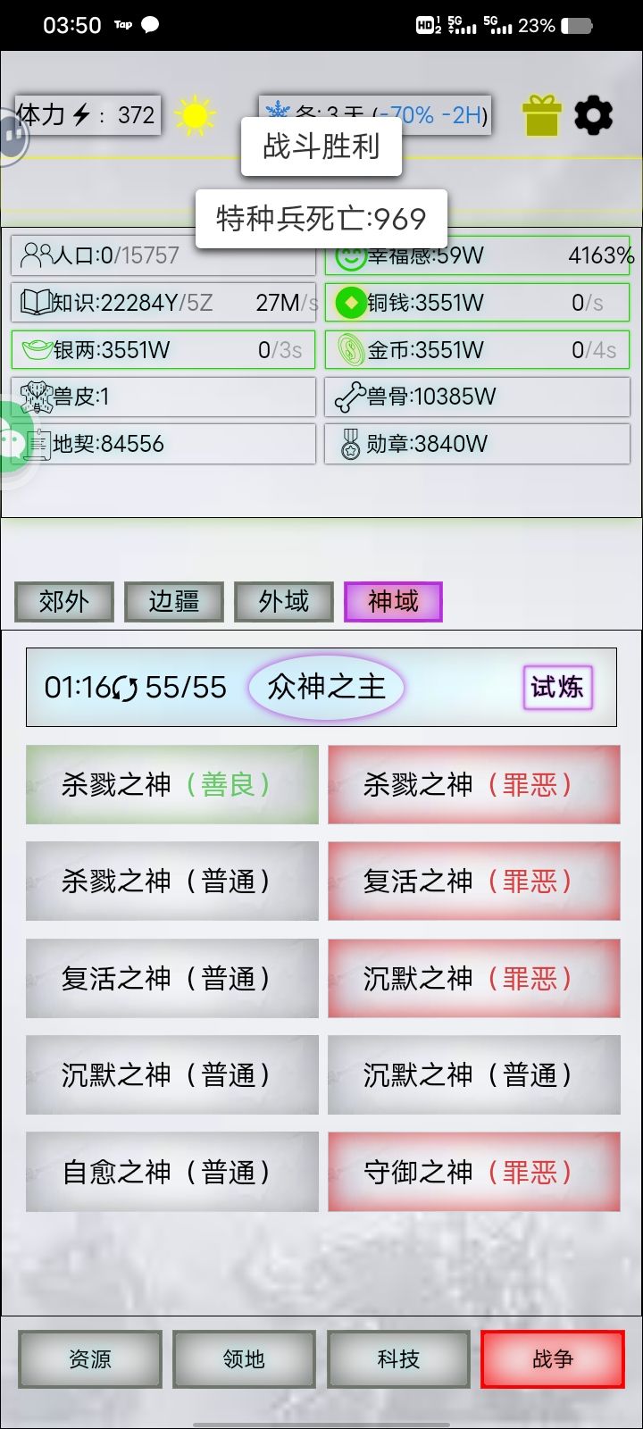今年二月份接触发到这款游戏,与我而言,画质精美特效爆炸的游戏玩的实在太多,在近乎产生电子阳痿的境况下与其相遇。 十分简单的文字游戏,简单的画面,简单的操作,但其中有着很好的游戏节奏与正反馈,让人情不自禁沉迷。 关于游戏内容,纵使玩了200个小时,也只刚开始屠神,不提也罢。但这是一款数据碰撞的游戏,简单的一个数字赋予不同的含义就是一个新的数据。 最后,还是祝大家中国节快乐。