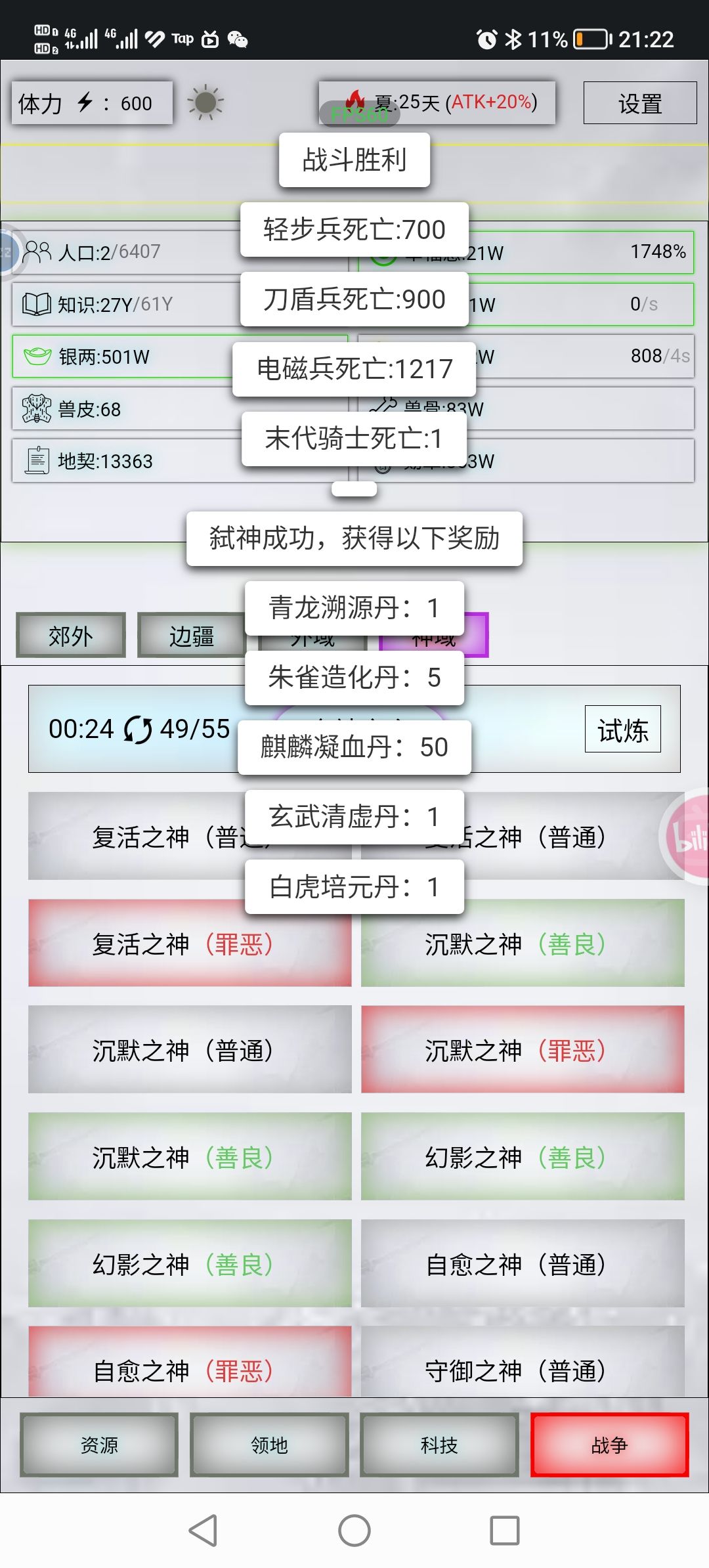 ①0杀戮神主(时间2024/10/14) 出站顺序别搞错了(精20) 第一顺序:1个末日骑士(未觉醒) 第二顺序:400轻步兵(觉醒100星) 第三顺序:500刀盾兵(觉醒100星) 第四顺序:900装甲兵(觉醒50星) 简单攻略:(这是我自己的属性) 轻步兵要觉醒13级简单➕7级极限 300个麒麟吃满 将魂要上5阶 装甲兵简单20级就行了,60个白虎丹,然后麒麟朱雀玄武丹药吃满。将魂4阶 ②1万