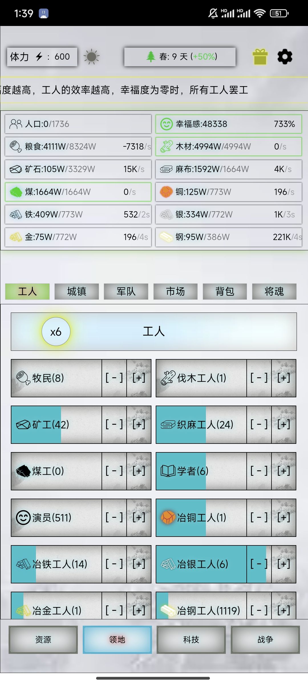 前几天发的最佳演员数有个常数算错了,这次重新发个正确的,你们可以根据公式算然后和自己慢慢调的对比,肯定是一样的。 假设最佳演员数为y,当前幸福度为p,总人口为x,当前演员数为y0,则满足 y=(96y0+96x-p-69280)/192。 比如说图中幸福度为48338,总人口为1736,当前演员数为511,则最佳演员数量为 (96*511+96*1736-48338-69280)/192=5