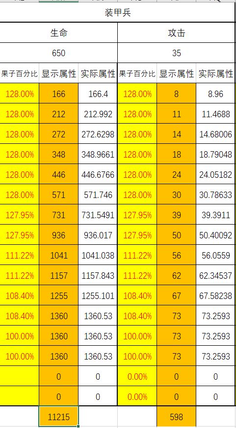 我之前想计算一下爆装甲的属性,所以特意做了一个量子武装计算的表,分别是计算各种不同方式吃果子的百分比,和不同红绿阵所加的属性值,然后我这两天卡蓝卡的难受,于是计算了一下装甲7 8阵红吃果子的姿势发现,如果你要吃紫,不按照大佬的量子武装极限攻略来,很容易28个果子加成是127.95,但是你要把127.95补成128又要多吃一个蓝,于是我算了各个不同的世界线。发现如果78阵是127.95的话,你是打算