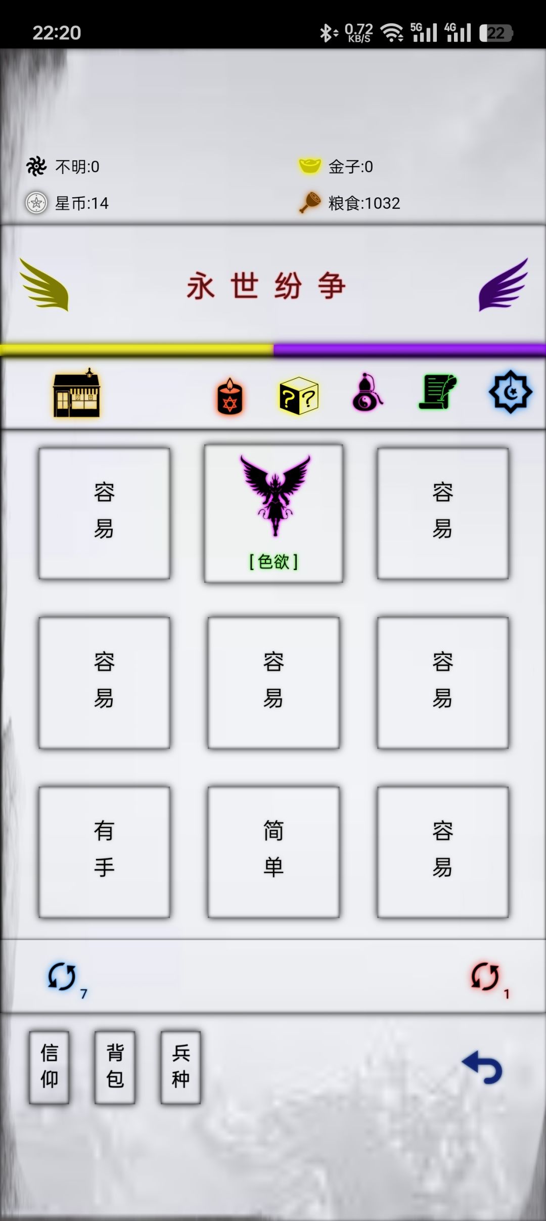 首先本贴是未起步,未完善的记录推论贴,基于166版本,确定有用的只有数据和功能介绍,各位看看就好。 本贴分为俩部分,功能介绍和前期路线推荐(可不看)。 参考链接: 功能介绍: 进入蛮荒之后的一些基础功能: 从上往下第一块: 不明:用途暂时不明,无获取渠道 金子:用途暂时不明,无获取渠道 星币:用途为在商店购买神性物,蛮荒装备及盲盒,主要获取渠道有三种:星币补给,战斗和每日登录赠送 注意的是,战斗每