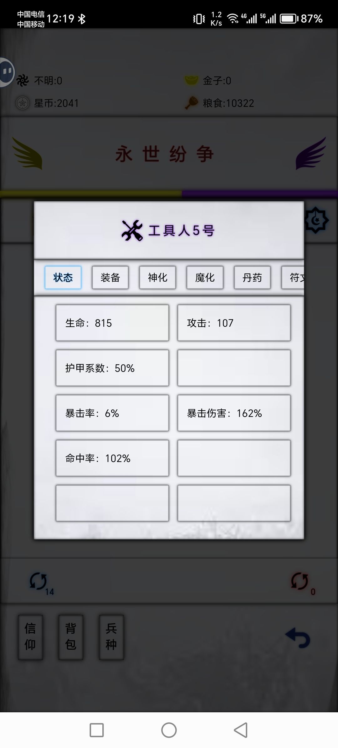 版本1.0.202 请注意时效性(虽然我觉得牢1不会再更新蛮荒了) 省流:游戏末期开闪避+免伤符文给重甲,凑齐60%闪避+60%免伤,出战为 轻步+刀盾+重甲+5000电磁,只记录3w杀以下 初入蛮荒:末代+工5+电磁 装备买完:龙骑+重甲(堆血)+电磁 属性符文全完美红:这时候龙骑不用带了,进入重甲秒前排流派,轻步+刀盾+重甲(输出)+少量电磁,足够打完boss即可。 核心要义在于用六个重甲一人